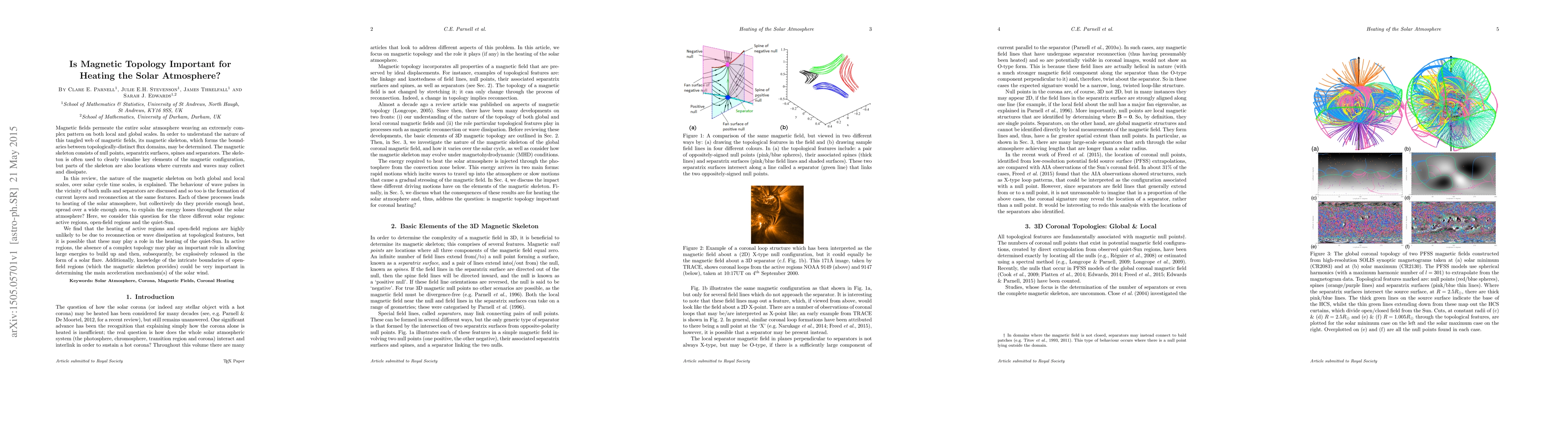 Research suggests that magnetic topology plays a significant role in heating the solar atmosphere, particularly in active regions and open-field regions, while its importance is less clear for the quiet Sun.