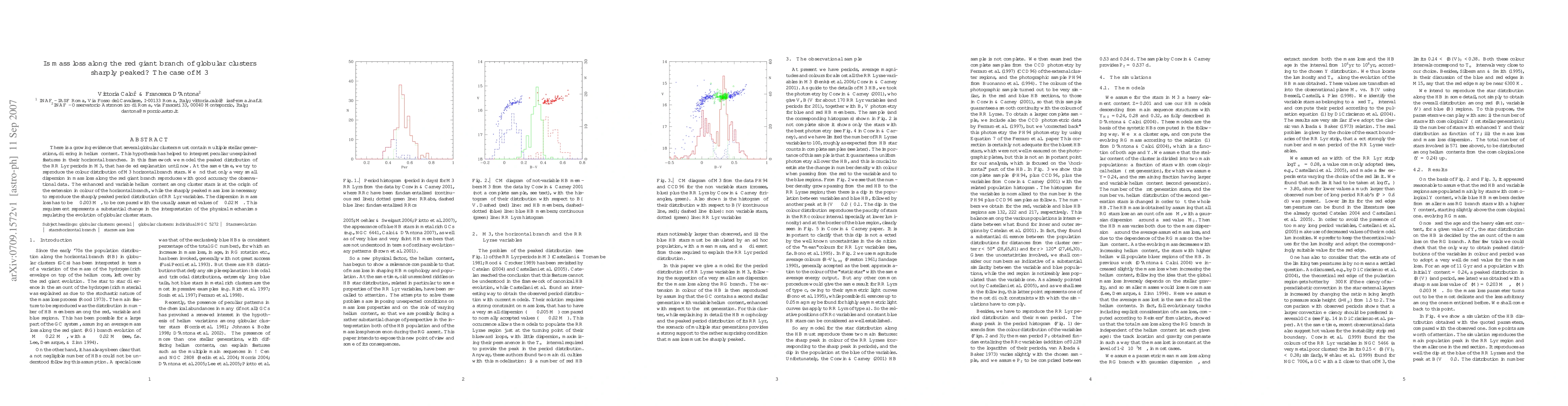 This paper investigates the mass loss along the red giant branch in the globular cluster M3, finding that a very small dispersion in mass loss (<~ 0.003 Msun) is necessary to accurately reproduce the observed period distribution of RR Lyr variables and the color distribution of horizontal branch stars. This challenges the usual assumption of mass loss dispersion (~0.02 Msun).