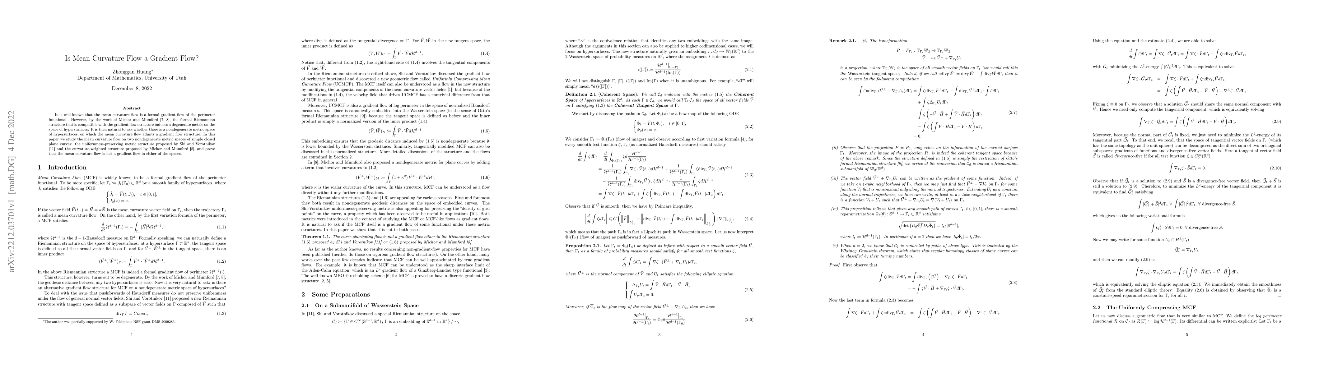 This paper investigates whether mean curvature flow can be represented as a gradient flow within two nondegenerate metric spaces for simple closed plane curves, finding that it is not a gradient flow in either the uniformness-preserving or curvature-weighted metric structures.