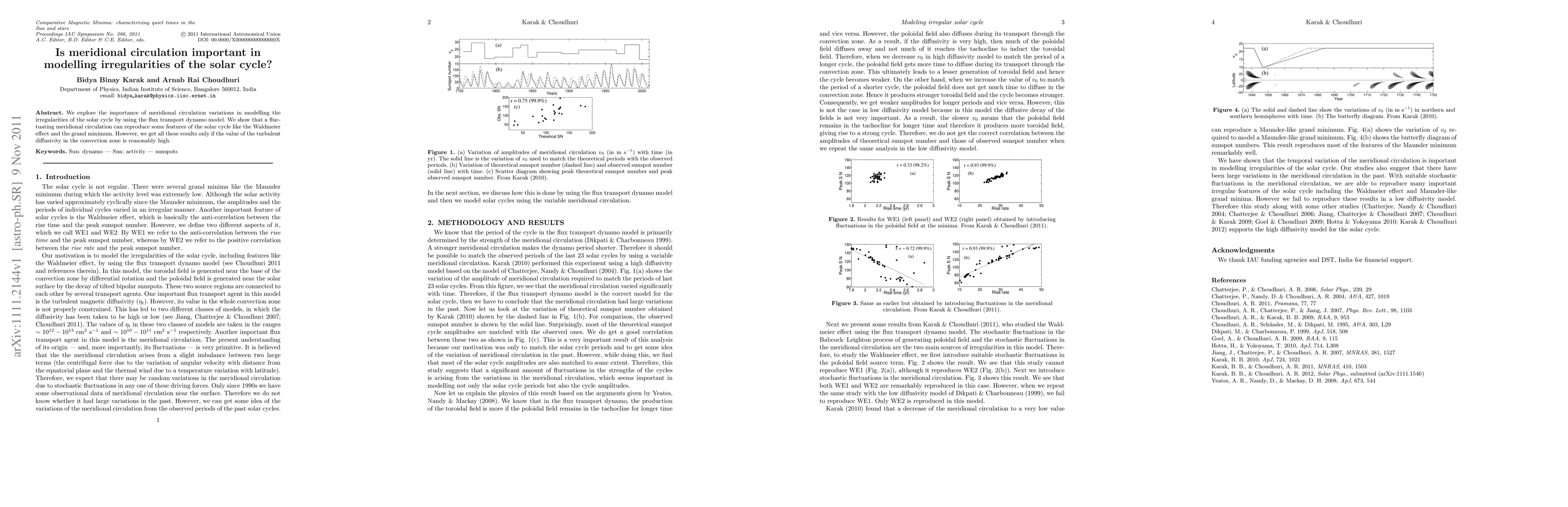 Summary: The study demonstrates that meridional circulation variations significantly impact modelling solar cycle irregularities, particularly the Waldmeier effect and grand minimum, but only when the turbulent diffusivity in the convection zone is sufficiently high.