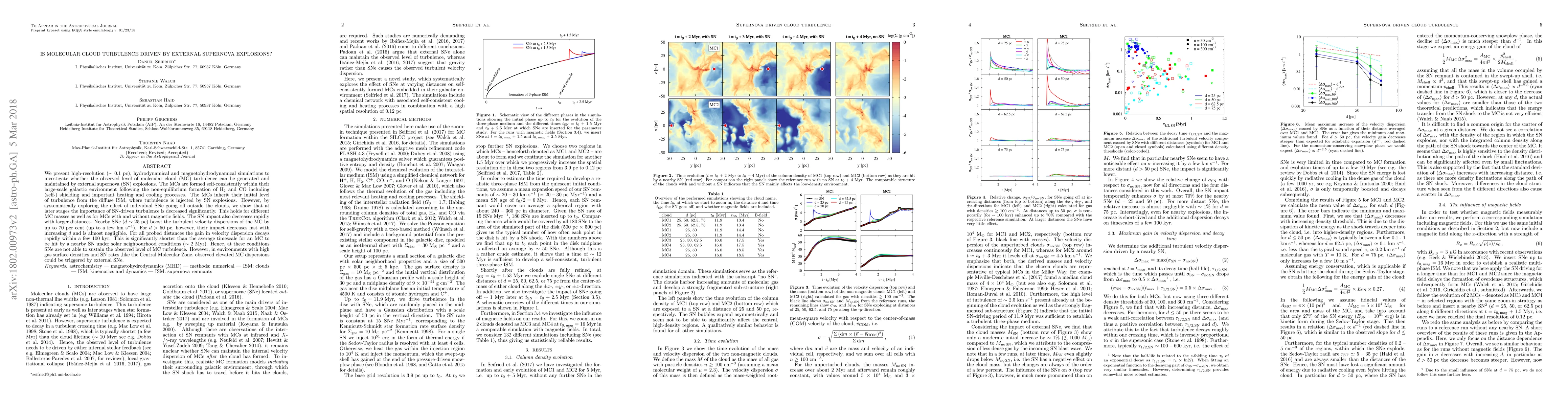 We present high-resolution ($\sim$ 0.1 pc), hydrodynamical and magnetohydrodynamical simulations to investigate whether the observed level of molecular cloud (MC) turbulence can be generated and maintained by external supernova (SN) explosions. The MCs are formed self-consistently within their large-scale galactic environment following the non-equilibrium formation of H$_2$ and CO including (self-) shielding and important heating and cooling processes. The MCs inherit their initial level of turbulence from the diffuse ISM, where turbulence is injected by SN explosions. However, by systematically exploring the effect of individual SNe going off outside the clouds, we show that at later stages the importance of SN driven turbulence is decreased significantly. This holds for different MC masses as well as MCs with and without magnetic fields. The SN impact also decreases rapidly with larger distances. Nearby SNe ($d$ $\sim$ 25 pc) boost the turbulent velocity dispersions of the MC by up to 70 per cent (up to a few km s$^{-1}$). For $d$ $>$ 50 pc, however, their impact decreases fast with increasing $d$ and is almost negligible. For all probed distances the gain in velocity dispersion decays rapidly within a few 100 kyr. This is significantly shorter than the average timescale for a MC to be hit by a nearby SN under solar neighbourhood conditions ($\sim$ 2 Myr). Hence, at these conditions SNe are not able to sustain the observed level of MC turbulence. However, in environments with high gas surface densities and SN rates like the Central Molecular Zone, observed elevated MC dispersions could be triggered by external SNe.