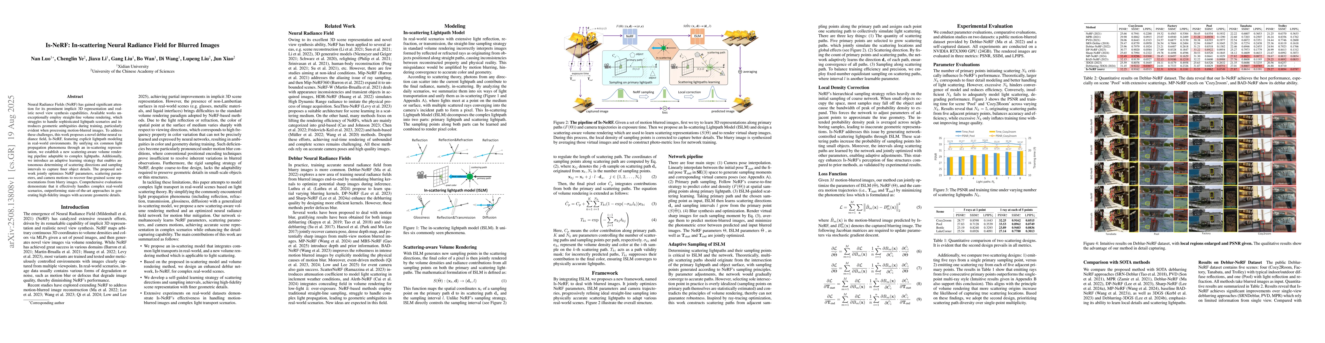 Neural Radiance Fields (NeRF) has gained significant attention for its prominent implicit 3D representation and realistic novel view synthesis capabilities. Available works unexceptionally employ straight-line volume rendering, which struggles to handle sophisticated lightpath scenarios and introduces geometric ambiguities during training, particularly evident when processing motion-blurred images. To address these challenges, this work proposes a novel deblur neural radiance field, Is-NeRF, featuring explicit lightpath modeling in real-world environments. By unifying six common light propagation phenomena through an in-scattering representation, we establish a new scattering-aware volume rendering pipeline adaptable to complex lightpaths. Additionally, we introduce an adaptive learning strategy that enables autonomous determining of scattering directions and sampling intervals to capture finer object details. The proposed network jointly optimizes NeRF parameters, scattering parameters, and camera motions to recover fine-grained scene representations from blurry images. Comprehensive evaluations demonstrate that it effectively handles complex real-world scenarios, outperforming state-of-the-art approaches in generating high-fidelity images with accurate geometric details.