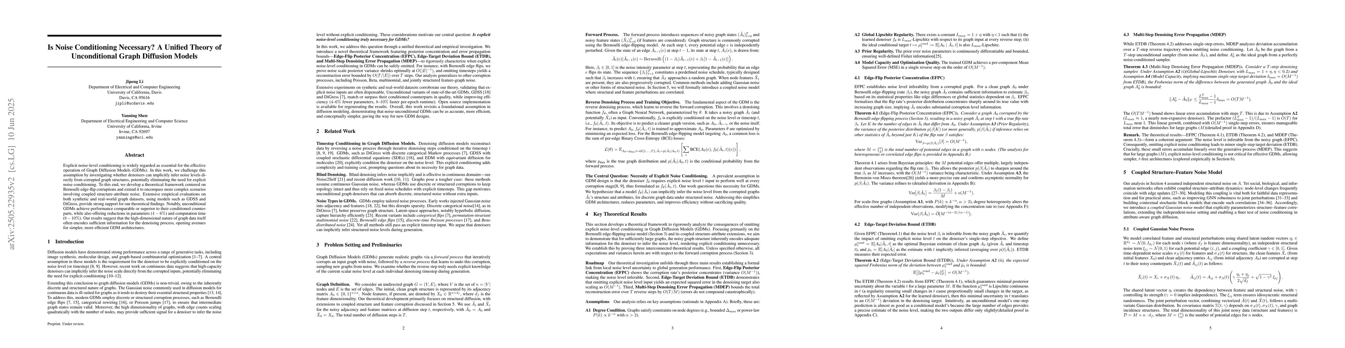 The research investigates whether denoisers can infer noise levels directly from corrupted graph structures, challenging the necessity of explicit noise conditioning in Graph Diffusion Models (GDMs). A theoretical framework based on Bernoulli edge-flip corruptions is developed and extended to handle coupled structure-attribute noise.