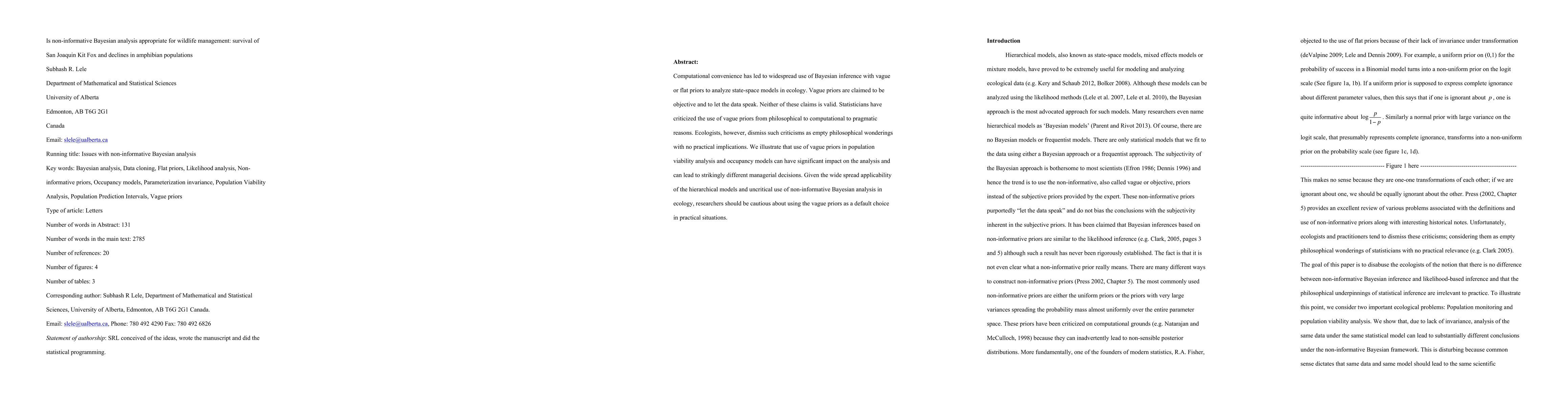 Computational convenience has led to widespread use of Bayesian inference with vague or flat priors to analyze state-space models in ecology. Vague priors are claimed to be objective and to let the data speak. Neither of these claims is valid. Statisticians have criticized the use of vague priors from philosophical to computational to pragmatic reasons. Ecologists, however, dismiss such criticisms as empty philosophical wonderings with no practical implications. We illustrate that use of vague priors in population viability analysis and occupancy models can have significant impact on the analysis and can lead to strikingly different managerial decisions. Given the wide spread applicability of the hierarchical models and uncritical use of non-informative Bayesian analysis in ecology, researchers should be cautious about using the vague priors as a default choice in practical situations.