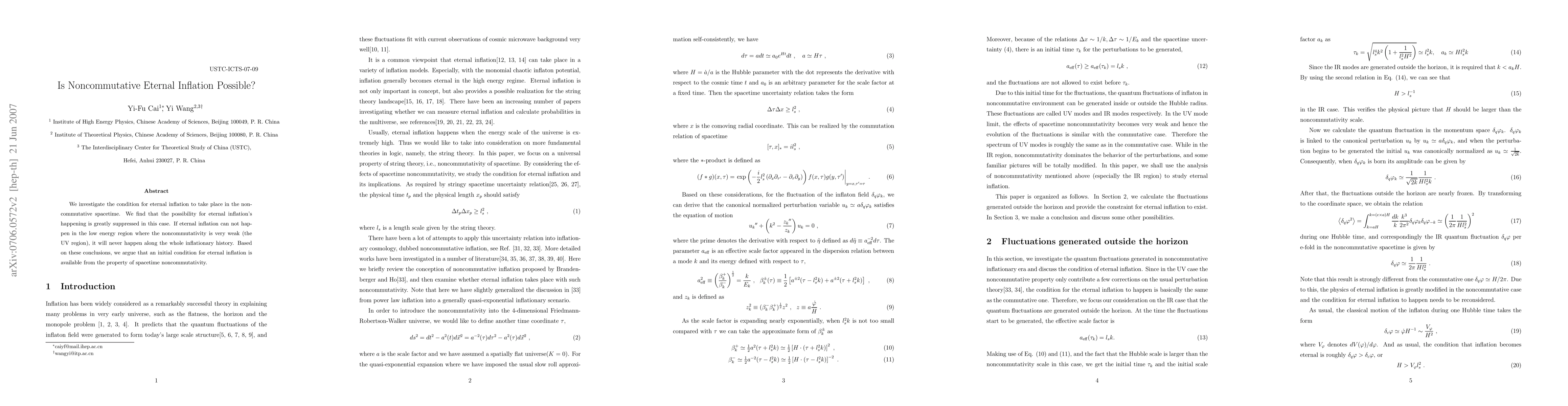 This paper explores the feasibility of eternal inflation within noncommutative spacetime, concluding that such inflation is highly unlikely due to the suppression of its occurrence. The authors argue that since eternal inflation cannot occur in regions where noncommutativity is minimal, it remains infeasible throughout the inflationary history.