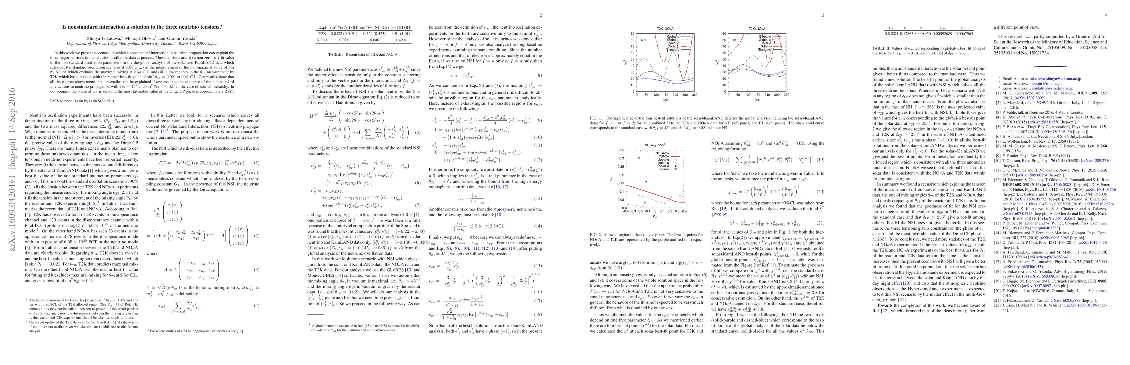 In this work we present a scenario in which a nonstandard interaction in neutrino propagation can explain the three major tensions in the neutrino oscillation data at present. These tensions are: (i) a non-zero best-fit value of the non-standard oscillation parameters in the the global analysis of the solar and KamLAND data which rules out the standard oscillation scenario at $90\%$ C.L, (ii) the measurement of the non-maximal value of $\theta_{23}$ by NO$\nu$A which excludes the maximal mixing at $2.5 \sigma$ C.L. and (iii) a discrepancy in the $\theta_{13}$ measurement by T2K which has a tension with the reactor best-fit value of $\sin^2\theta_{13}=0.021$ at $90\%$ C.L. Our results show that all these three above mentioned anomalies can be explained if one assumes the existence of the non-standard interactions in neutrino propagation with $\theta_{23}=45^\circ$ and $\sin^2\theta_{13}=0.021$ in the case of normal hierarchy. In our scenario the phase of $\epsilon_{e\tau}$ is zero and the most favorable value of the Dirac CP phase is approximately $255^\circ$.