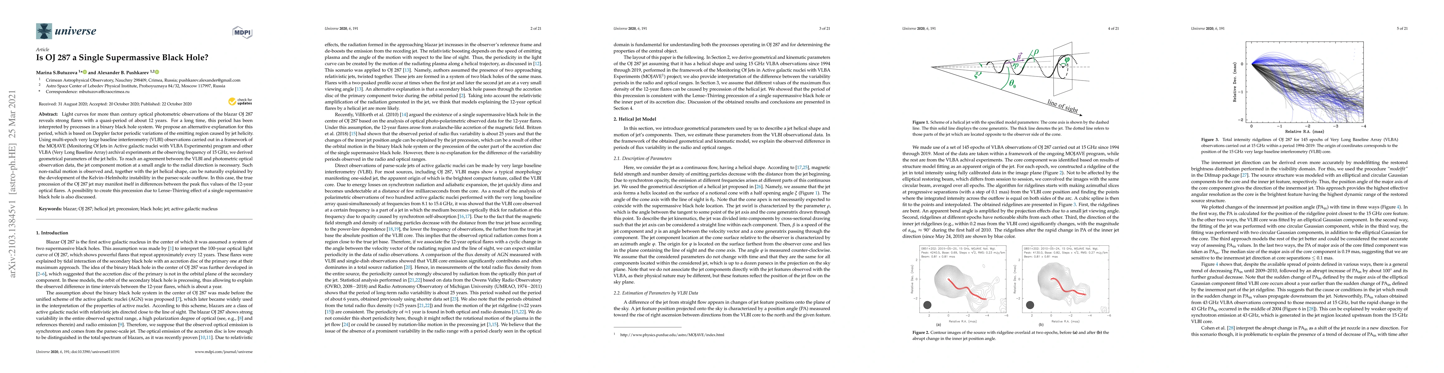 This paper proposes an alternative explanation for the 12-year optical flares in blazar OJ 287, suggesting that they result from Doppler factor variations due to jet helicity rather than a binary black hole system. The study uses VLBI observations to derive geometrical parameters supporting a helical jet influenced by Kelvin-Helmholtz instability and Lense-Thirring precession around a single supermassive black hole.