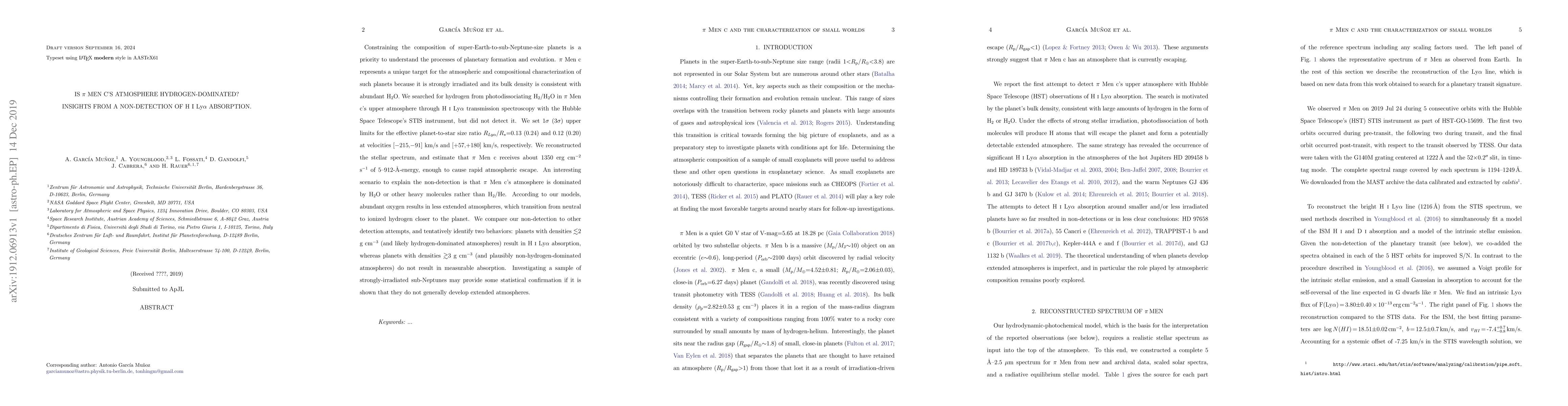 The research paper investigates pi Men c's atmosphere, finding no evidence of Hy Ly-alpha absorption, suggesting it may not be hydrogen-dominated. Instead, the atmosphere could be dominated by H2O or other heavy molecules, leading to less extended atmospheres and different ionization patterns.