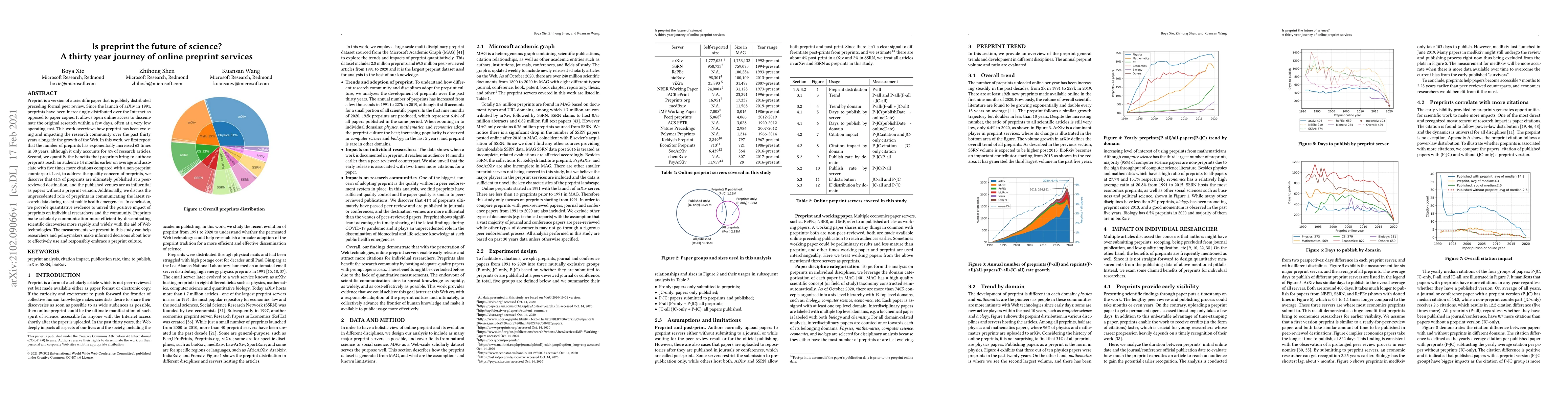 Preprint is a version of a scientific paper that is publicly distributed preceding formal peer review. Since the launch of arXiv in 1991, preprints have been increasingly distributed over the Internet as opposed to paper copies. It allows open online access to disseminate the original research within a few days, often at a very low operating cost. This work overviews how preprint has been evolving and impacting the research community over the past thirty years alongside the growth of the Web. In this work, we first report that the number of preprints has exponentially increased 63 times in 30 years, although it only accounts for 4% of research articles. Second, we quantify the benefits that preprints bring to authors: preprints reach an audience 14 months earlier on average and associate with five times more citations compared with a non-preprint counterpart. Last, to address the quality concern of preprints, we discover that 41% of preprints are ultimately published at a peer-reviewed destination, and the published venues are as influential as papers without a preprint version. Additionally, we discuss the unprecedented role of preprints in communicating the latest research data during recent public health emergencies. In conclusion, we provide quantitative evidence to unveil the positive impact of preprints on individual researchers and the community. Preprints make scholarly communication more efficient by disseminating scientific discoveries more rapidly and widely with the aid of Web technologies. The measurements we present in this study can help researchers and policymakers make informed decisions about how to effectively use and responsibly embrace a preprint culture.