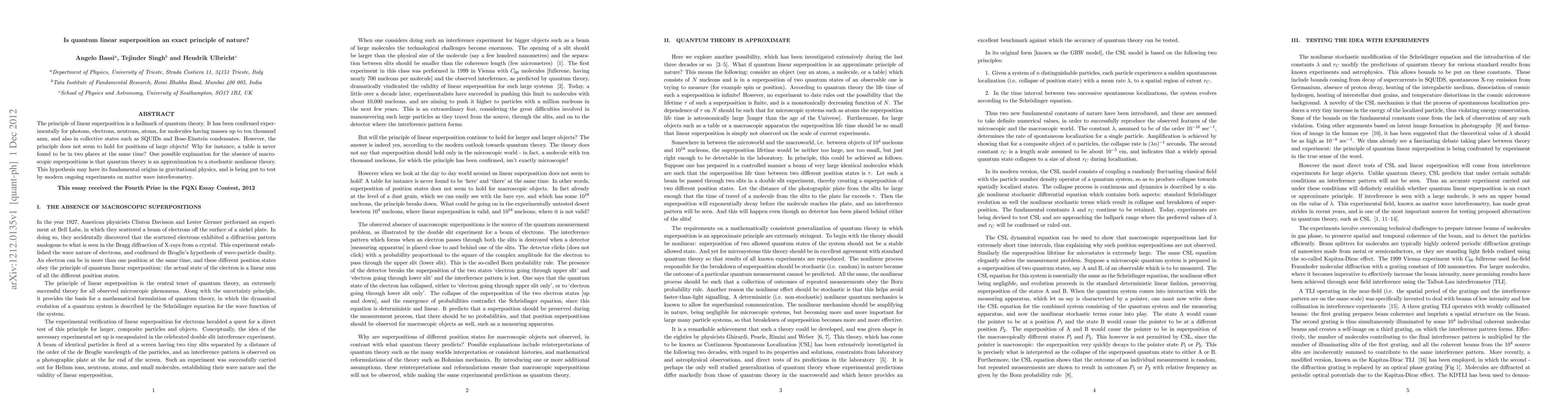 The principle of linear superposition is well-established in quantum theory but fails for large objects, suggesting quantum theory may be an approximation of a stochastic nonlinear theory rooted in gravitational physics. Ongoing experiments in matter wave interferometry aim to test this hypothesis.