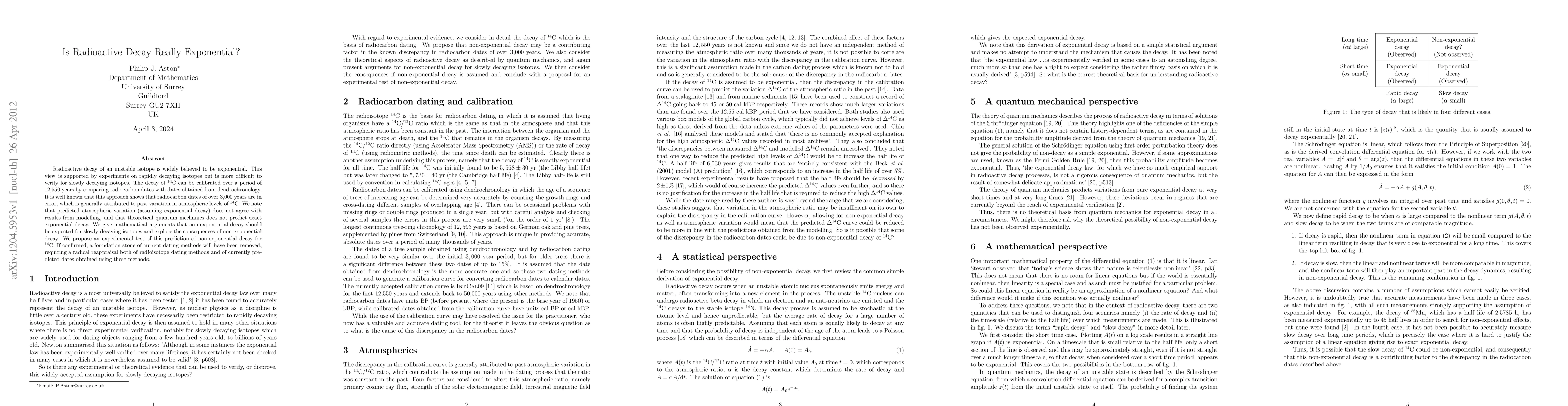 Researchers question the exponential nature of radioactive decay, suggesting that slowly decaying isotopes like 14C may exhibit non-exponential behavior, potentially invalidating current dating methods.