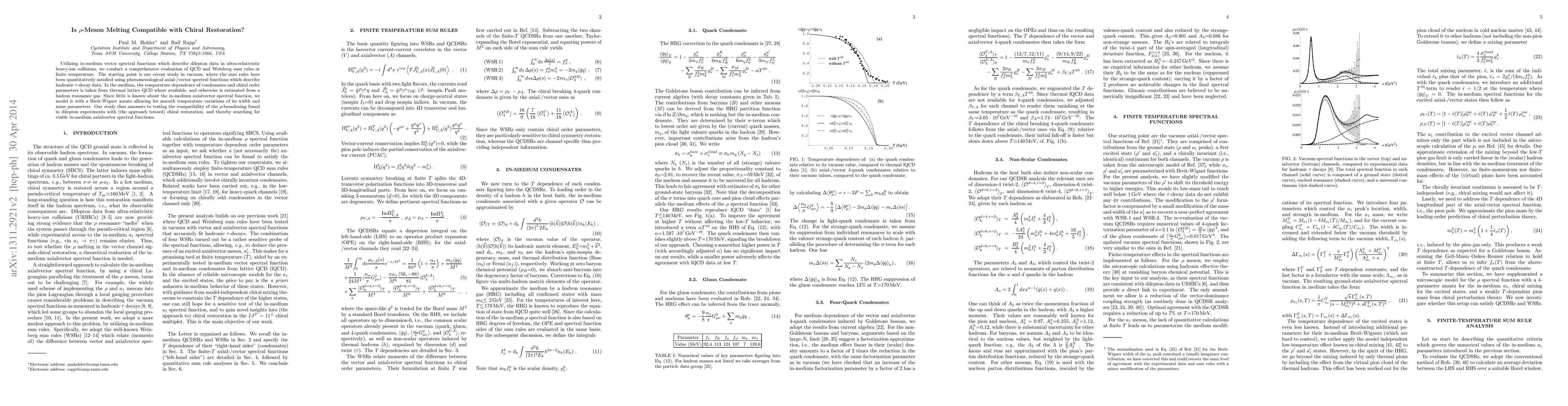 Utilizing in-medium vector spectral functions which describe dilepton data in ultra-relativistic heavy-ion collisions, we conduct a comprehensive evaluation of QCD and Weinberg sum rules at finite temperature. The starting point is our recent study in vacuum, where the sum rules have been quantitatively satisfied using phenomenological axial-/vector spectral functions which describe hadronic tau-decay data. In the medium, the temperature dependence of condensates and chiral order parameters is taken from thermal lattice QCD where available, and otherwise estimated from a hadron resonance gas. Since little is known about the in-medium axial-vector spectral function, we model it with a Breit-Wigner ansatz allowing for smooth temperature variations of its width and mass parameters. Our study thus amounts to testing the compatibility of the $\rho$-broadening found in dilepton experiments with (the approach toward) chiral restoration, and thereby searching for viable in-medium axial-vector spectral functions.