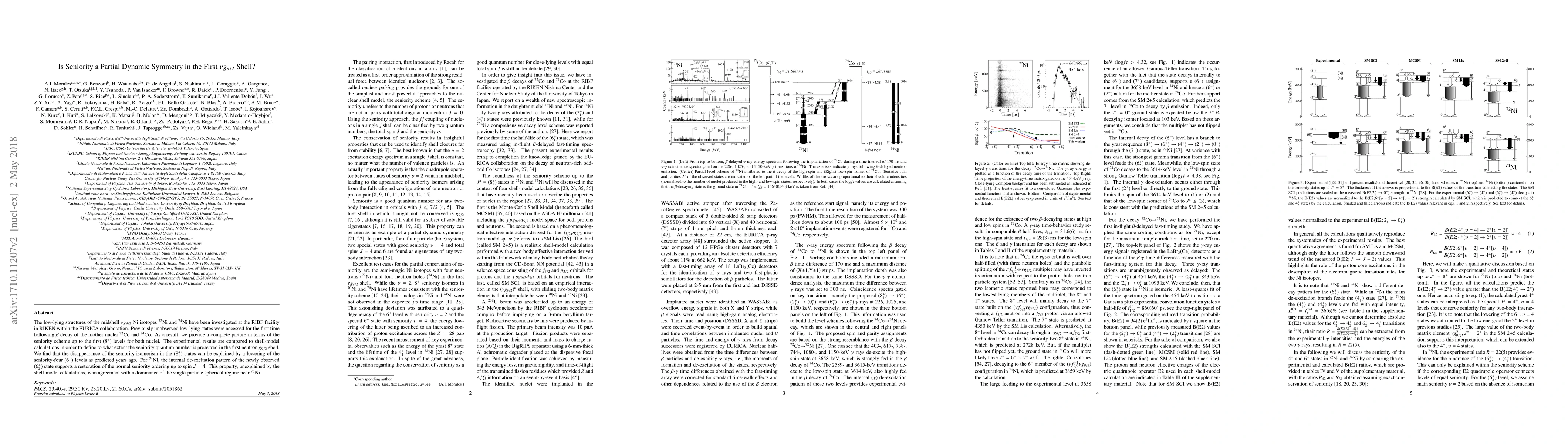 The low-lying structures of the midshell $\nu g_{9/2}$ Ni isotopes $^{72}$Ni and $^{74}$Ni have been investigated at the RIBF facility in RIKEN within the EURICA collaboration. Previously unobserved low-lying states were accessed for the first time following $\beta$ decay of the mother nuclei $^{72}$Co and $^{74}$Co. As a result, we provide a complete picture in terms of the seniority scheme up to the first $(8^+)$ levels for both nuclei. The experimental results are compared to shell-model calculations in order to define to what extent the seniority quantum number is preserved in the first neutron $g_{9/2}$ shell. We find that the disappearance of the seniority isomerism in the $(8^+_1)$ states can be explained by a lowering of the seniority-four $(6^+)$ levels as predicted years ago. For $^{74}$Ni, the internal de-excitation pattern of the newly observed $(6^+_2)$ state supports a restoration of the normal seniority ordering up to spin $J=4$. This property, unexplained by the shell-model calculations, is in agreement with a dominance of the single-particle spherical regime near $^{78}$Ni.