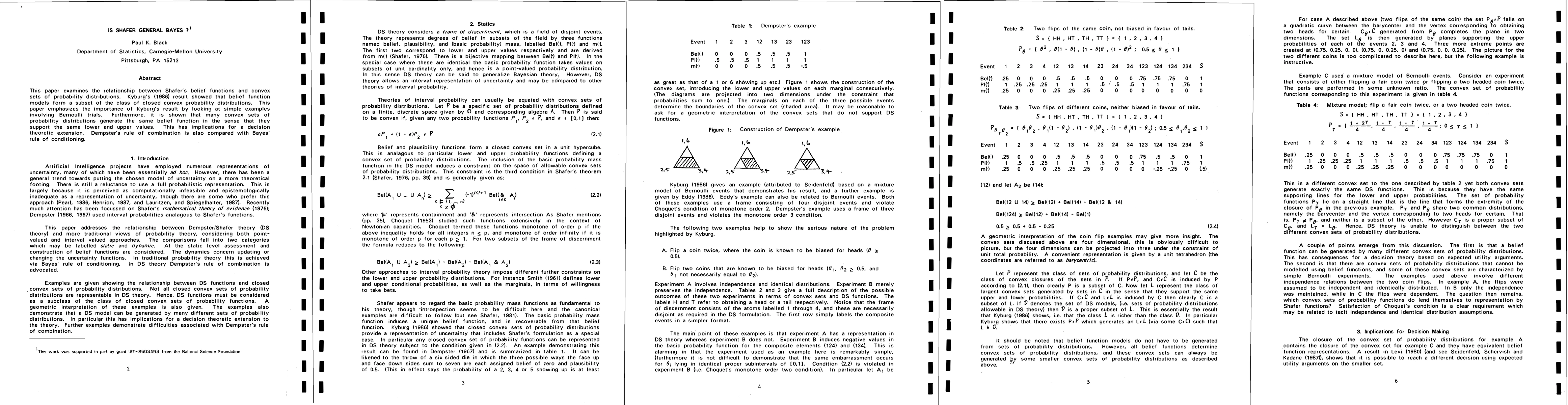 This paper examines the relationship between Shafer's belief functions and convex sets of probability distributions. Kyburg's (1986) result showed that belief function models form a subset of the class of closed convex probability distributions. This paper emphasizes the importance of Kyburg's result by looking at simple examples involving Bernoulli trials. Furthermore, it is shown that many convex sets of probability distributions generate the same belief function in the sense that they support the same lower and upper values. This has implications for a decision theoretic extension. Dempster's rule of combination is also compared with Bayes' rule of conditioning.