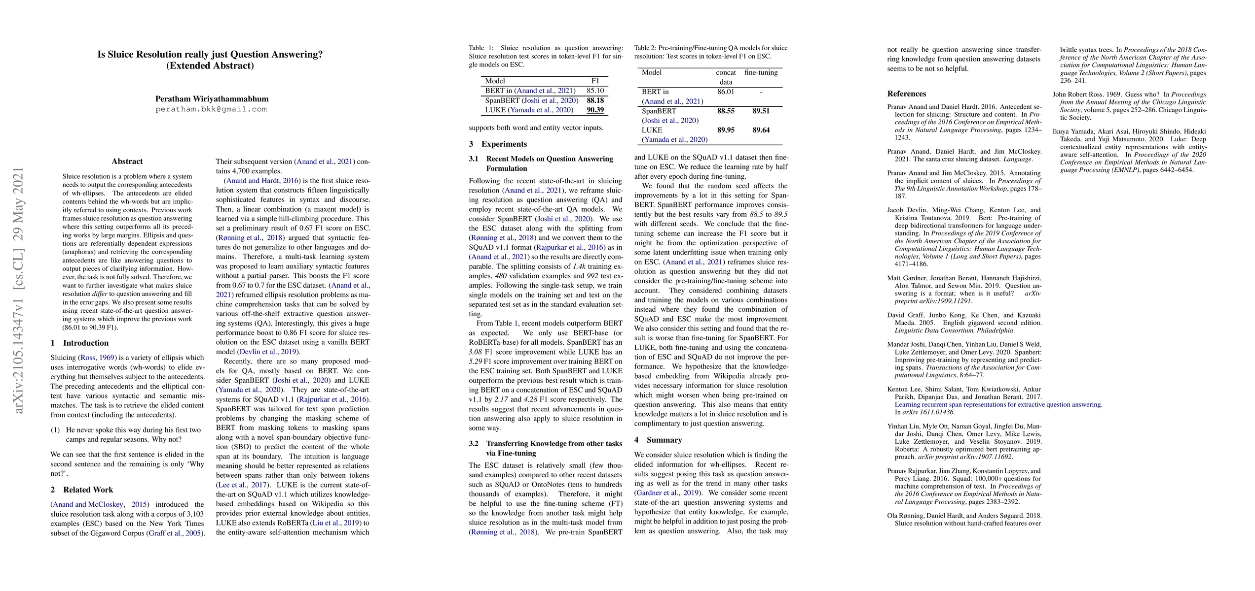 The research presents a fine-tuning scheme that can improve performance on sluice resolution tasks.