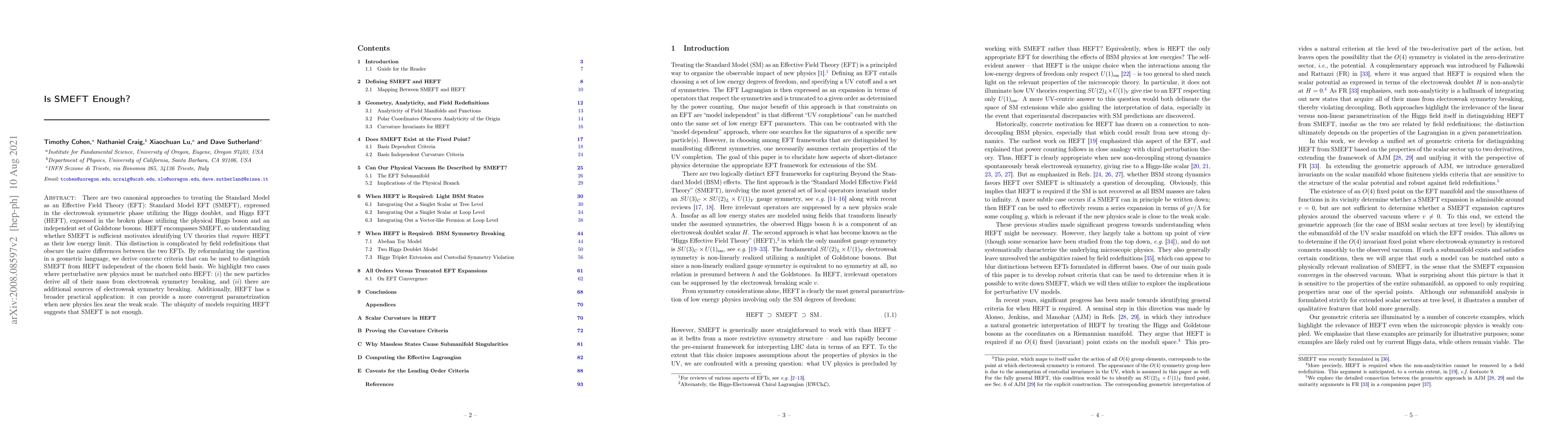 There are two canonical approaches to treating the Standard Model as an Effective Field Theory (EFT): Standard Model EFT (SMEFT), expressed in the electroweak symmetric phase utilizing the Higgs doublet, and Higgs EFT (HEFT), expressed in the broken phase utilizing the physical Higgs boson and an independent set of Goldstone bosons. HEFT encompasses SMEFT, so understanding whether SMEFT is sufficient motivates identifying UV theories that require HEFT as their low energy limit. This distinction is complicated by field redefinitions that obscure the naive differences between the two EFTs. By reformulating the question in a geometric language, we derive concrete criteria that can be used to distinguish SMEFT from HEFT independent of the chosen field basis. We highlight two cases where perturbative new physics must be matched onto HEFT: (i) the new particles derive all of their mass from electroweak symmetry breaking, and (ii) there are additional sources of electroweak symmetry breaking. Additionally, HEFT has a broader practical application: it can provide a more convergent parametrization when new physics lies near the weak scale. The ubiquity of models requiring HEFT suggests that SMEFT is not enough.