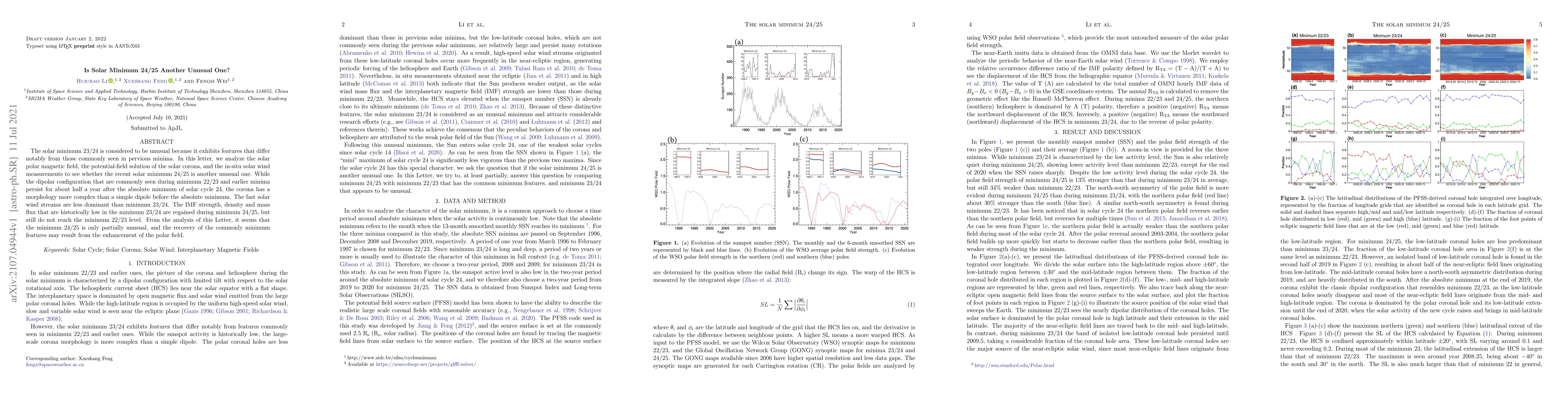 The analysis reveals that the recent solar minimum 24/25 is partially unusual, with some features recovering to historical levels.