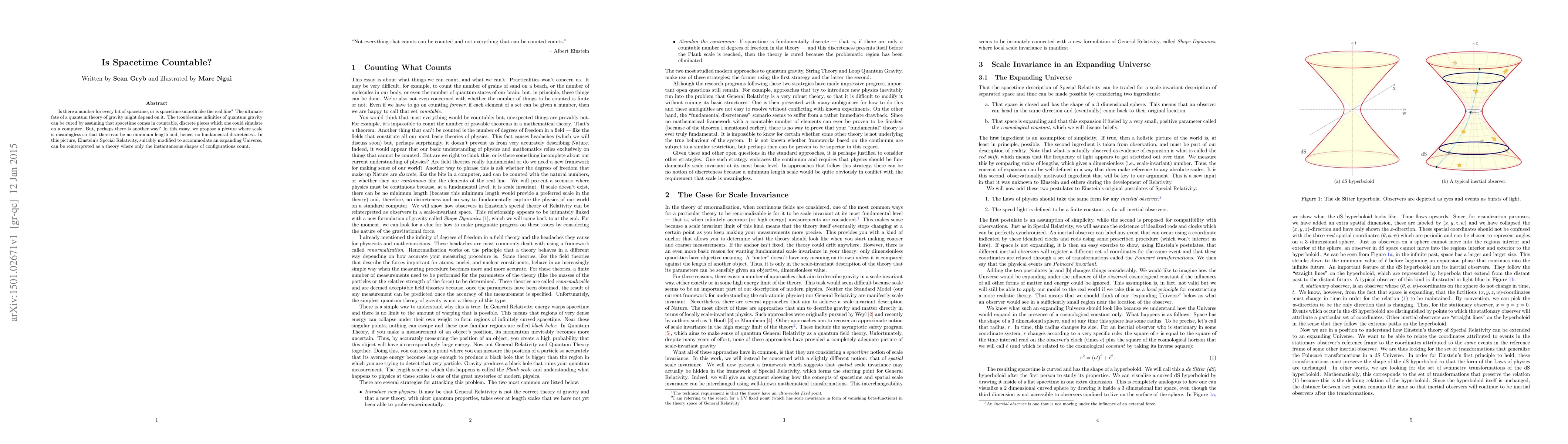 This paper explores whether spacetime is countable and discrete or smooth, suggesting that the resolution of quantum gravity's infinities may depend on this. It proposes an alternative view where scale is meaningless, eliminating fundamental discreteness and reinterpreting Special Relativity in a way that only instantaneous shapes matter.