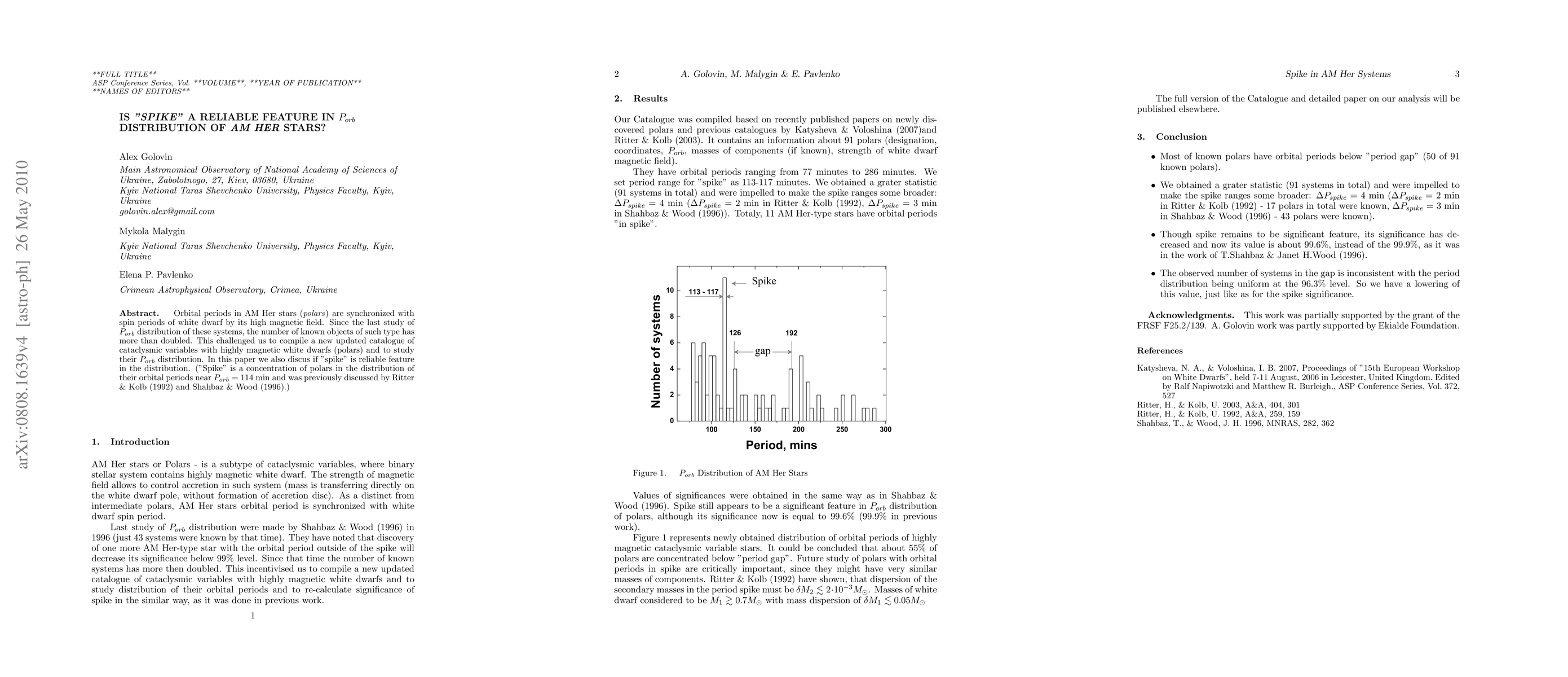 A new study investigates the orbital periods of AM Her stars in relation to their white dwarf spin periods, challenging previous findings about a 'spike' in distribution, and provides an updated catalogue of cataclysmic variables.