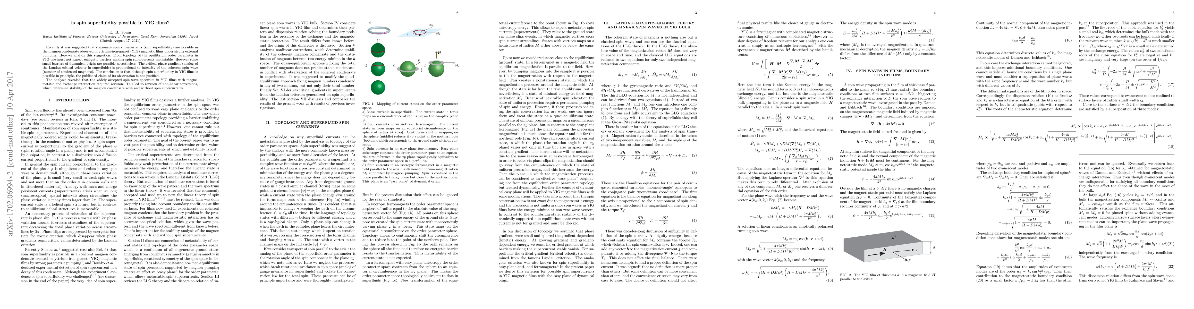 Researchers analyze the possibility of spin superfluidity in YIG films, concluding it is theoretically possible but not justified by previous observations.