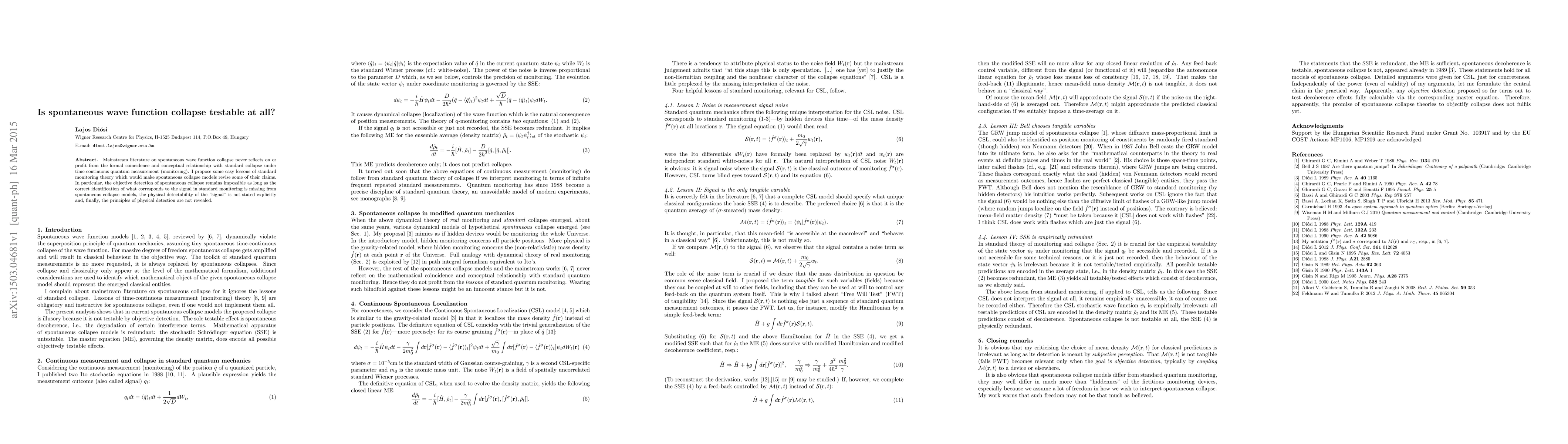 This paper argues that spontaneous wave function collapse cannot be objectively detected due to a lack of clear identification of the signal, explicit physical detectability, and principles of physical detection in spontaneous collapse models, mirroring issues found in standard quantum measurement monitoring.