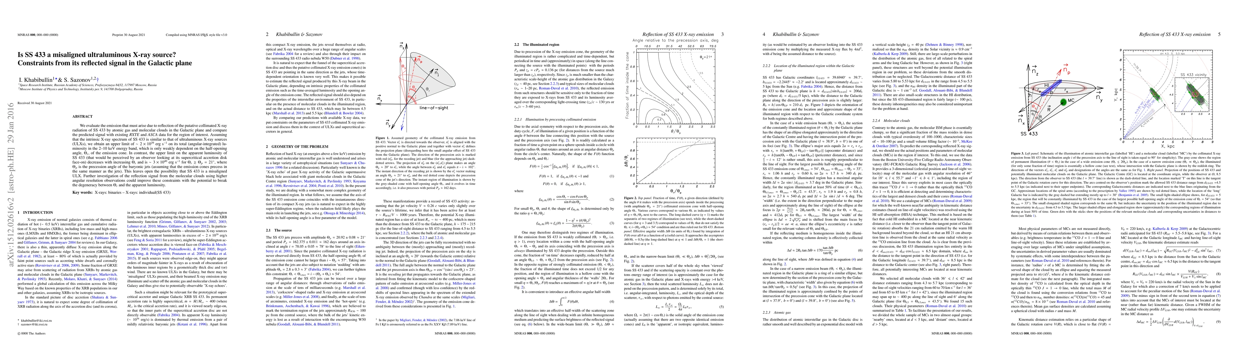 This paper investigates whether SS 433 could be a misaligned ultraluminous X-ray source (ULX) by analyzing its reflected X-ray signal in the Galactic plane. The study finds an upper limit on SS 433's luminosity that supports the possibility of it being a misaligned ULX, suggesting further high-resolution observations could refine these constraints.