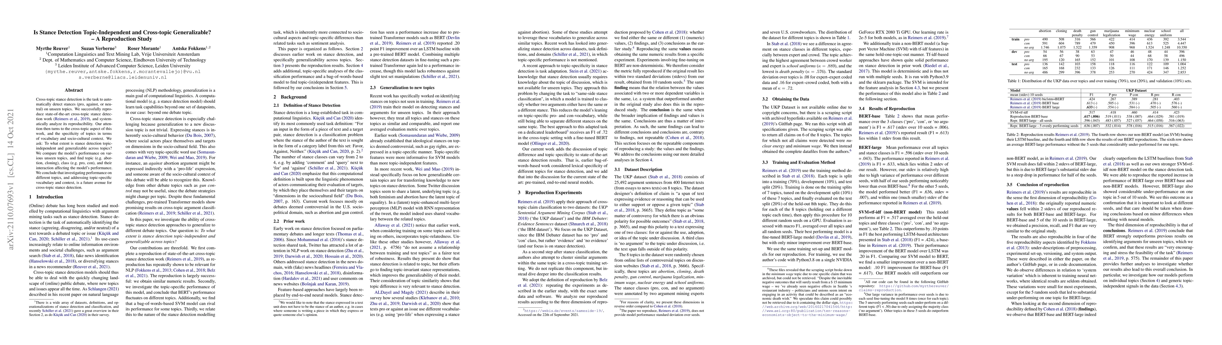 This study reproduces state-of-the-art cross-topic stance detection and finds that model performance varies significantly across different topics, highlighting the need for addressing topic-specific vocabulary and context for better generalizability.