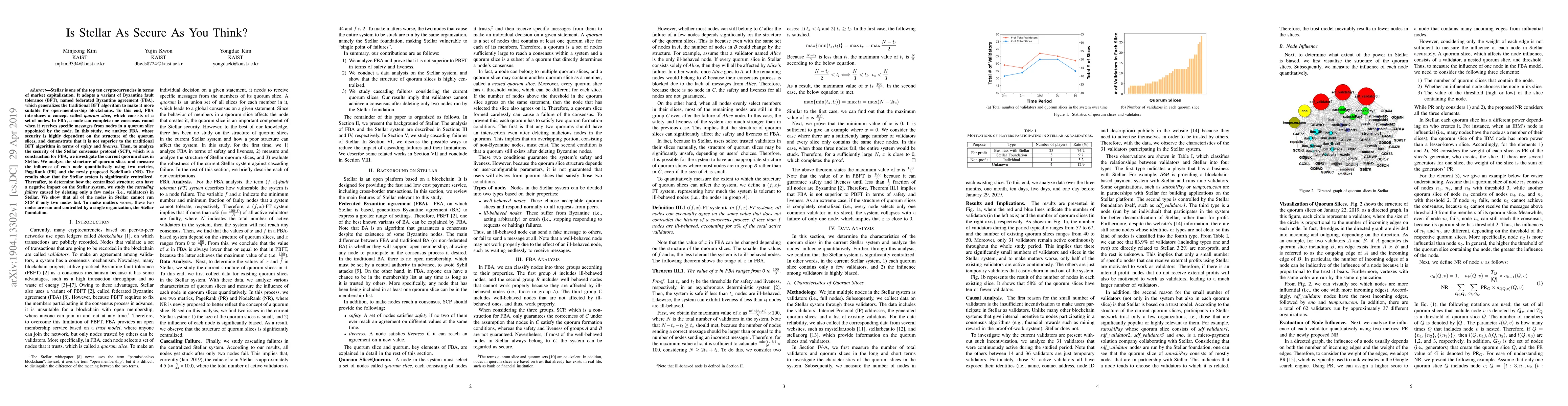 The Stellar cryptocurrency's consensus protocol is found to be significantly centralized, with a single organization controlling two critical nodes that can cause cascading failures in the system.