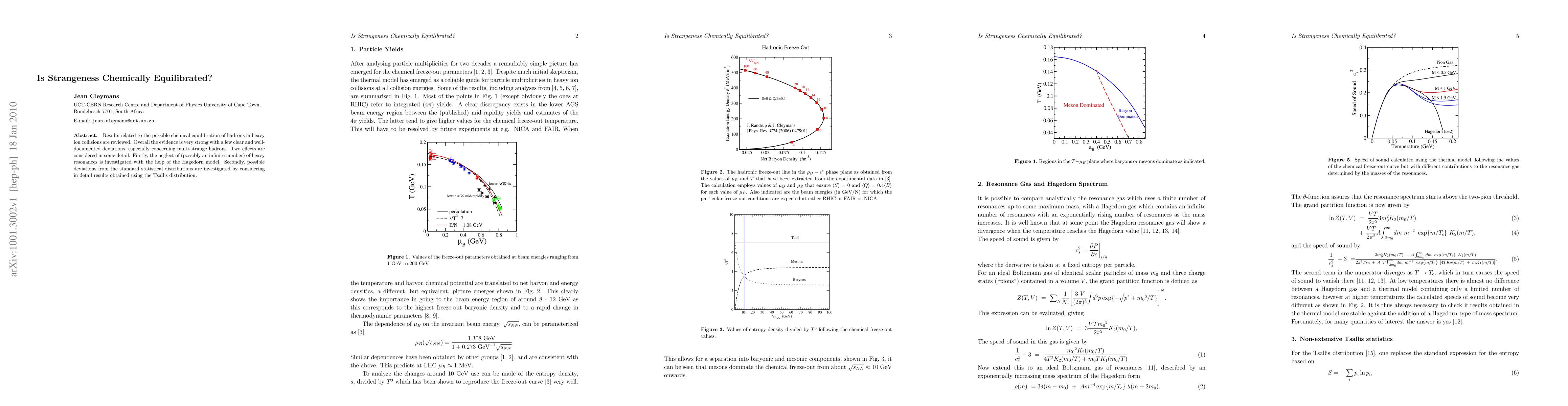 Results related to the possible chemical equilibration of hadrons in heavy ion collisions are reviewed. Overall the evidence is very strong with a few clear and well-documented deviations, especially concerning multi-strange hadrons. Two effects are considered in some detail. Firstly, the neglect of (possibly an infinite number) of heavy resonances is investigated with the help of the Hagedorn model. Secondly, possible deviations from the standard statistical distributions are investigated by considering in detail results obtained using the Tsallis distribution.