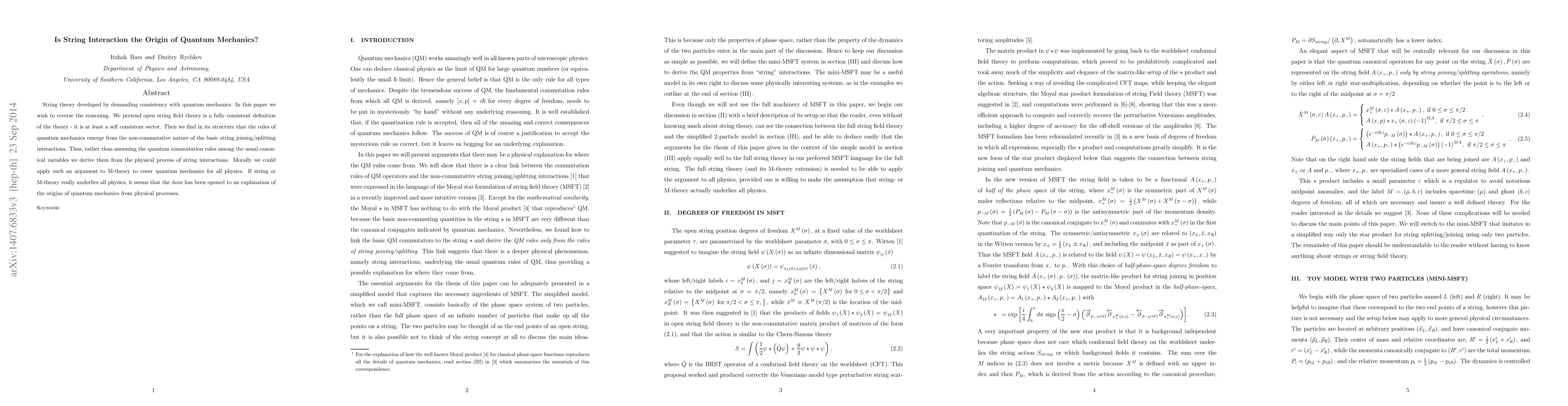 This paper explores whether string interaction can be the origin of quantum mechanics by examining open string field theory. It finds that the non-commutative nature of string joining/splitting interactions naturally leads to the quantum commutation rules, suggesting that string theory may underpin the fundamental principles of quantum mechanics.