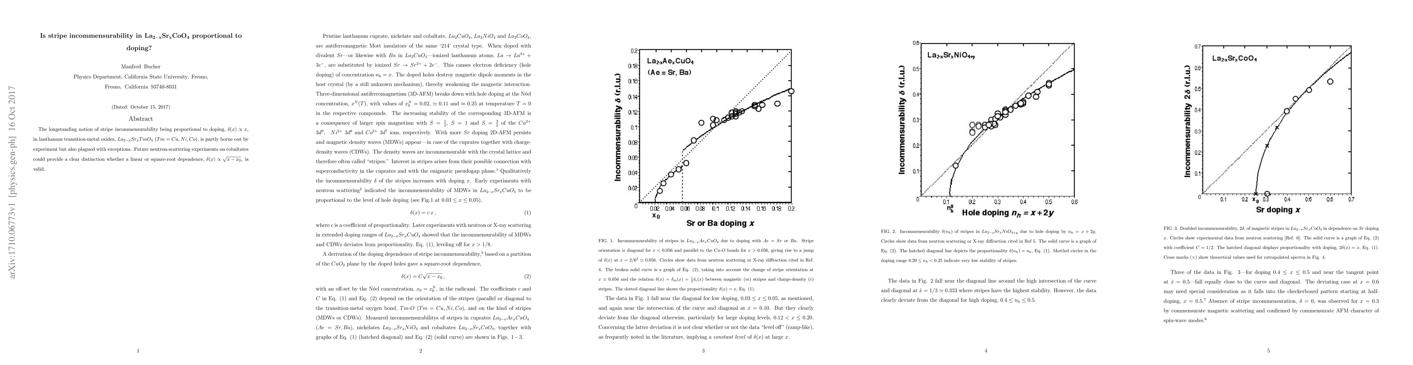 The longstanding notion of stripe incommensurability being proportional to doping, \delta(x) ~ x, in lanthanum transition-metal oxides, La_{2-x}Sr_xTmO_4 (Tm = Cu, Ni, Co), is partly borne out by experiment but also plagued with exceptions. Future neutron-scattering experiments on cobaltates could provide a clear distinction whether a linear or square-root dependence, \delta(x) ~ sqrt(x - x_0), is valid.