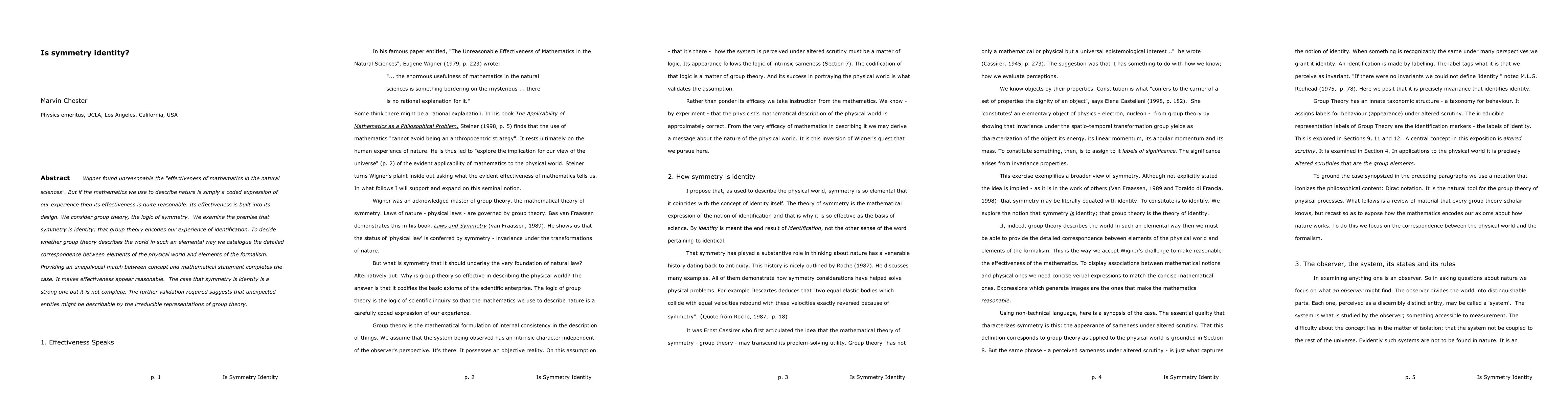 Wigner found unreasonable the "effectiveness of mathematics in the natural sciences". But if the mathematics we use to describe nature is simply a coded expression of our experience then its effectiveness is quite reasonable. Its effectiveness is built into its design. We consider group theory, the logic of symmetry. We examine the premise that symmetry is identity; that group theory encodes our experience of identification. To decide whether group theory describes the world in such an elemental way we catalogue the detailed correspondence between elements of the physical world and elements of the formalism. Providing an unequivocal match between concept and mathematical statement completes the case. It makes effectiveness appear reasonable. The case that symmetry is identity is a strong one but it is not complete. The further validation required suggests that unexpected entities might be describable by the irreducible representations of group theory.