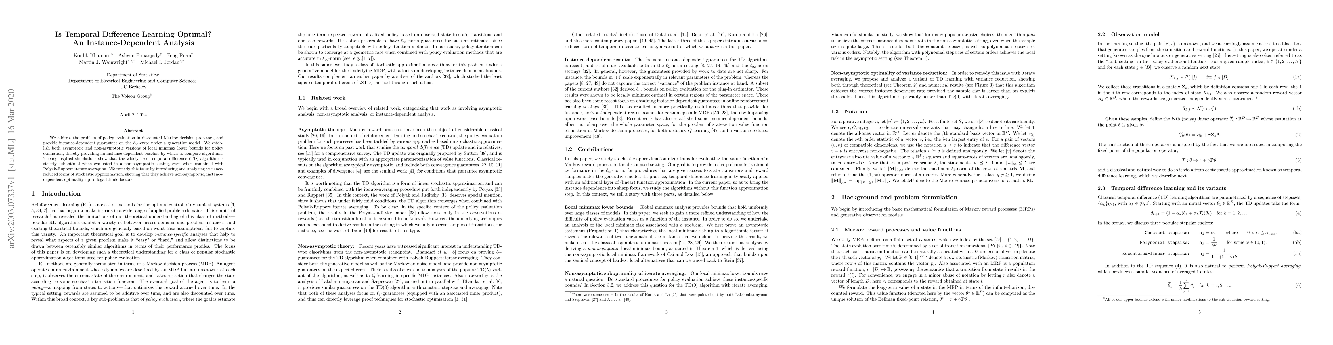 Research shows that traditional temporal difference learning algorithms can be suboptimal in non-asymptotic settings, but variance-reduced stochastic approximation methods achieve instance-dependent optimality with logarithmic factors.