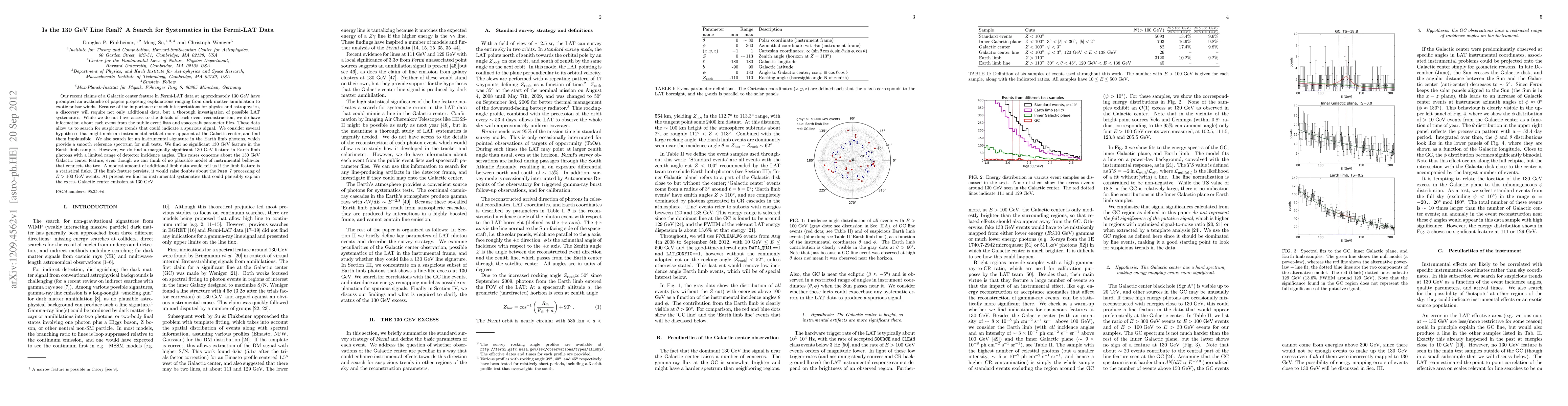 Our recent claims of a Galactic center feature in Fermi-LAT data at approximately 130 GeV have prompted an avalanche of papers proposing explanations ranging from dark matter annihilation to exotic pulsar winds. Because of the importance of such interpretations for physics and astrophysics, a discovery will require not only additional data, but a thorough investigation of possible LAT systematics. While we do not have access to the details of each event reconstruction, we do have information about each event from the public event lists and spacecraft parameter files. These data allow us to search for suspicious trends that could indicate a spurious signal. We consider several hypotheses that might make an instrumental artifact more apparent at the Galactic center, and find them implausible. We also search for an instrumental signature in the Earth limb photons, which provide a smooth reference spectrum for null tests. We find no significant 130 GeV feature in the Earth limb sample. However, we do find a marginally significant 130 GeV feature in Earth limb photons with a limited range of detector incidence angles. This raises concerns about the 130 GeV Galactic center feature, even though we can think of no plausible model of instrumental behavior that connects the two. A modest amount of additional limb data would tell us if the limb feature is a statistical fluke. If the limb feature persists, it would raise doubts about the Pass 7 processing of E > 100 GeV events. At present we find no instrumental systematics that could plausibly explain the excess Galactic center emission at 130 GeV.