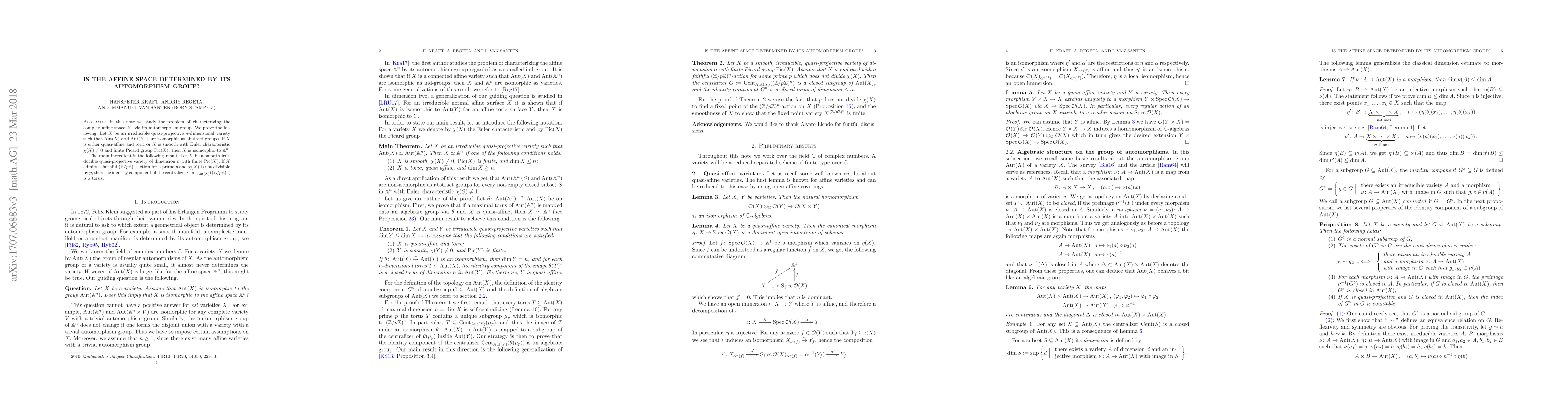 In this note we study the problem of characterizing the complex affine space $\mathbb{A}^n$ via its automorphism group. We prove the following. Let $X$ be an irreducible quasi-projective $n$-dimensional variety such that $\mathrm{Aut}(X)$ and $\mathrm{Aut}(\mathbb{A}^n)$ are isomorphic as abstract groups. If $X$ is either quasi-affine and toric or $X$ is smooth with Euler characteristic $\chi(X) \neq 0$ and finite Picard group $\mathrm{Pic}(X)$, then $X$ is isomorphic to $\mathbb{A}^n$. The main ingredient is the following result. Let $X$ be a smooth irreducible quasi-projective variety of dimension $n$ with finite $\mathrm{Pic}(X)$. If $X$ admits a faithful $(\mathbb{Z} / p \mathbb{Z})^n$-action for a prime $p$ and $\chi(X)$ is not divisible by $p$, then the identity component of the centralizer $\mathrm{Cent}_{\mathrm{Aut}(X)}( (\mathbb{Z} / p \mathbb{Z})^n)$ is a torus.