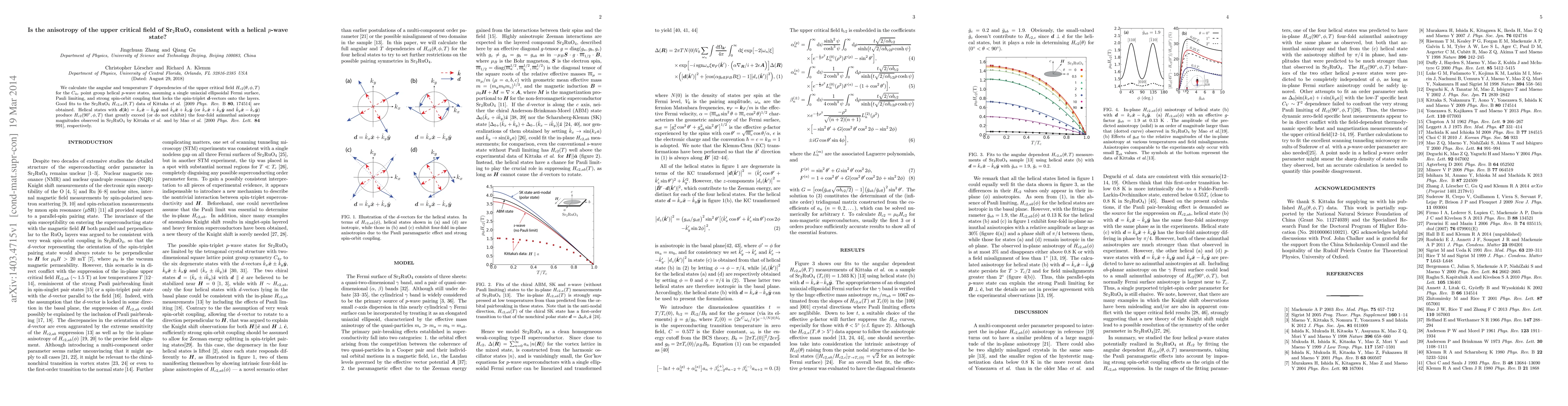 Researchers investigated whether Sr$_2$RuO$_4$'s upper critical field anisotropy aligns with a helical $p$-wave state, finding that certain helical states produce anomalous four-fold azimuthal anisotropy magnitudes observed in the material.