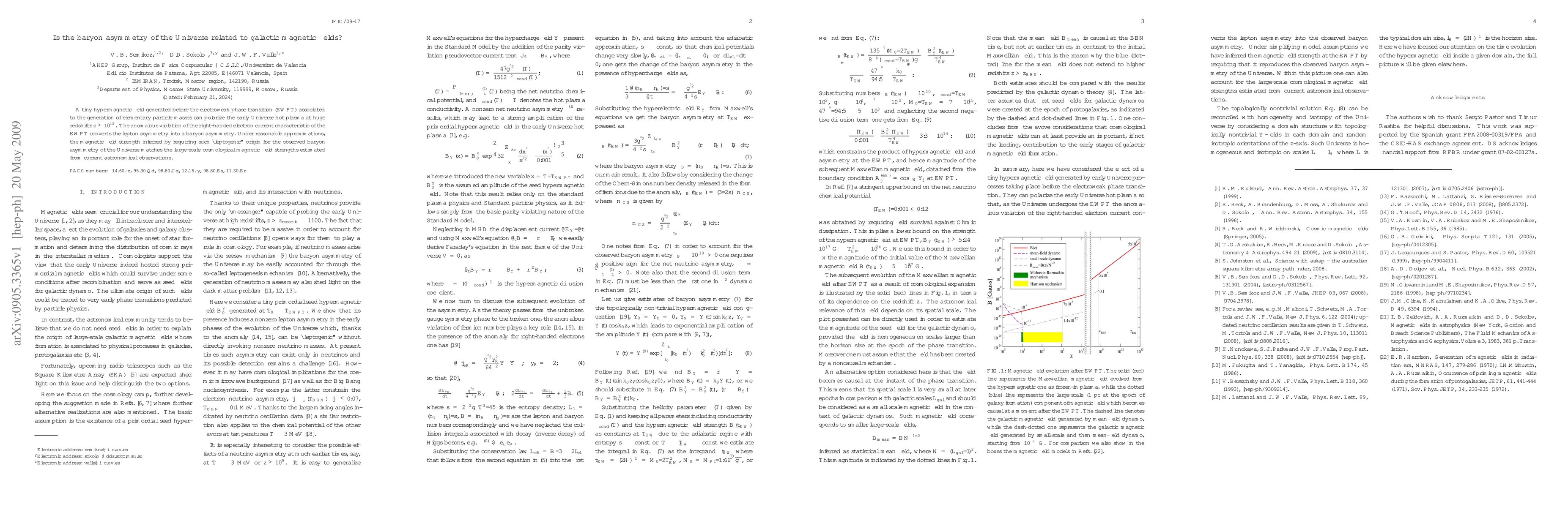 This paper explores whether the baryon asymmetry in the Universe is linked to galactic magnetic fields, suggesting that a hypermagnetic field before the electroweak phase transition could polarize early Universe plasma, converting lepton asymmetry into baryon asymmetry, with inferred magnetic field strengths matching those observed in cosmology.