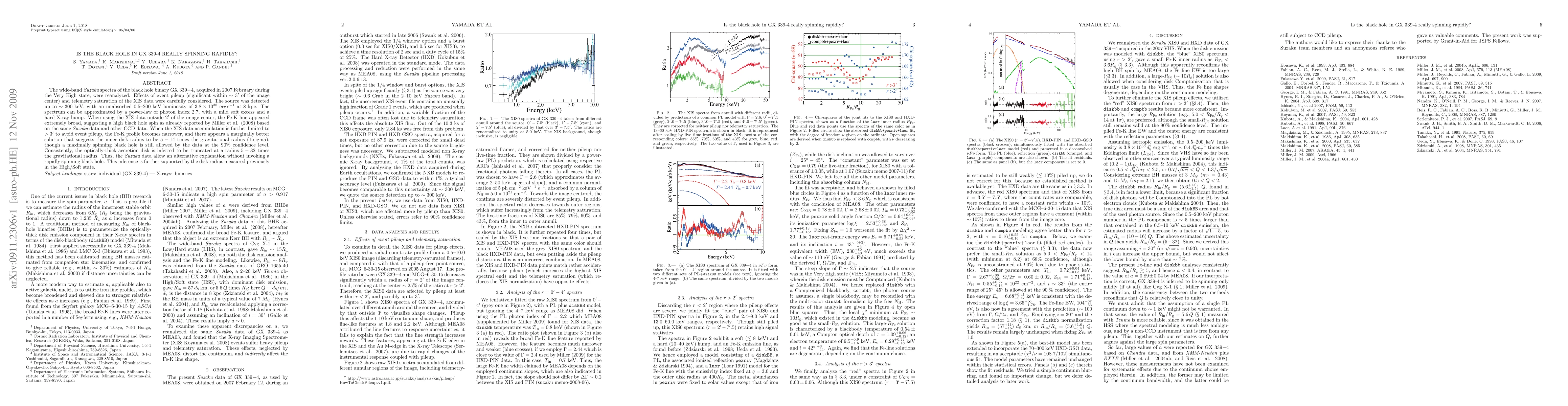 The wide-band Suzaku spectra of the black hole binary GX 339-4, acquired in 2007 February during the Very High state, were reanalyzed. Effects of event pileup (significant within ~ 3' of the image center) and telemetry saturation of the XIS data were carefully considered. The source was detected up to ~ 300$ keV, with an unabsorbed 0.5--200 keV luminosity of ~3.8 10^{38} erg/s at 8 kpc. The spectrum can be approximated by a power-law of photon index 2.7, with a mild soft excess and a hard X-ray hump. When using the XIS data outside 2' of the image center, the Fe-K line appeared extremely broad, suggesting a high black hole spin as already reported by Miller et al. (2008) based on the Suzaku data and other CCD data. When the XIS data accumulation is further limited to >3' to avoid event pileup, the Fe-K profile becomes narrower, and there appears a marginally better solution that suggests the inner disk radius to be 5-14 times the gravitational radius (1-sigma), though a maximally spinning black hole is still allowed by the data at the 90% confidence level. Consistently, the optically-thick accretion disk is inferred to be truncated at a radius 5-32 times the gravitational radius. Thus, the Suzaku data allow an alternative explanation without invoking a rapidly spinning black hole. This inference is further supported by the disk radius measured previously in the High/Soft state.