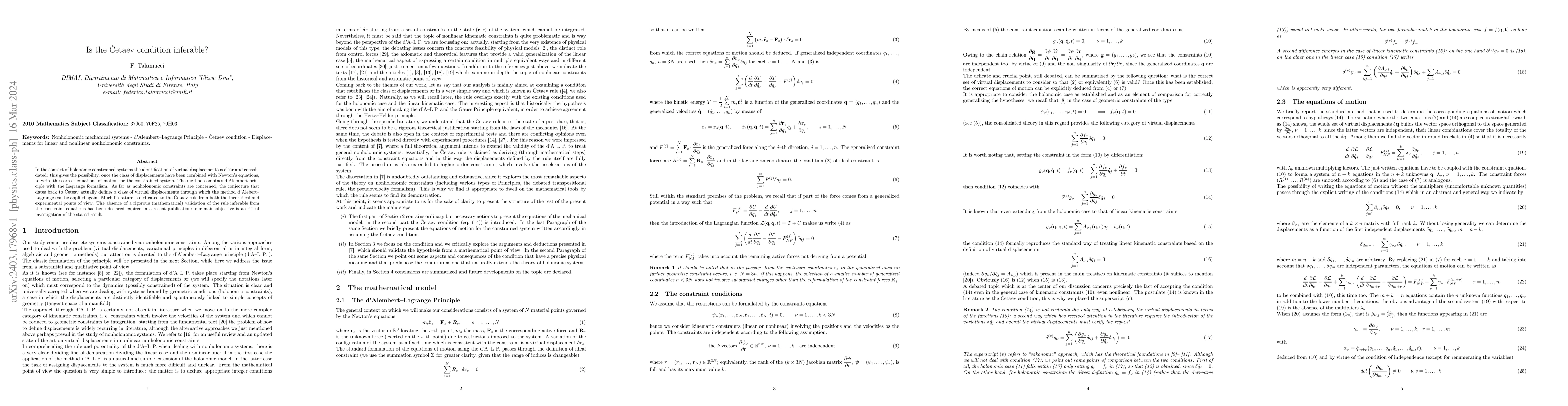 In the context of holonomic constrained systems the identification of virtual displacements is clear and consolidated: this gives the possibility, once the class of displacements have been combined with Newton's equations, to write the correct equations of motion for the constrained system. The method combines d'Alembert principle with the Lagrange formalism. As far as nonholonomic constraints are concerned, the conjecture that dates back to Ceteav actually defines a class of virtual displacements through which the method d'Alebert-Lagrange can be applied again. Much literature is dedicated to the Cetaev rule from both the theoretical and experimental points of view. The absence of a rigorous (mathematical) validation of the rule inferable from the constraint equations has been declared expired in a recent publication: our main objective is a critical investigation of the stated result.