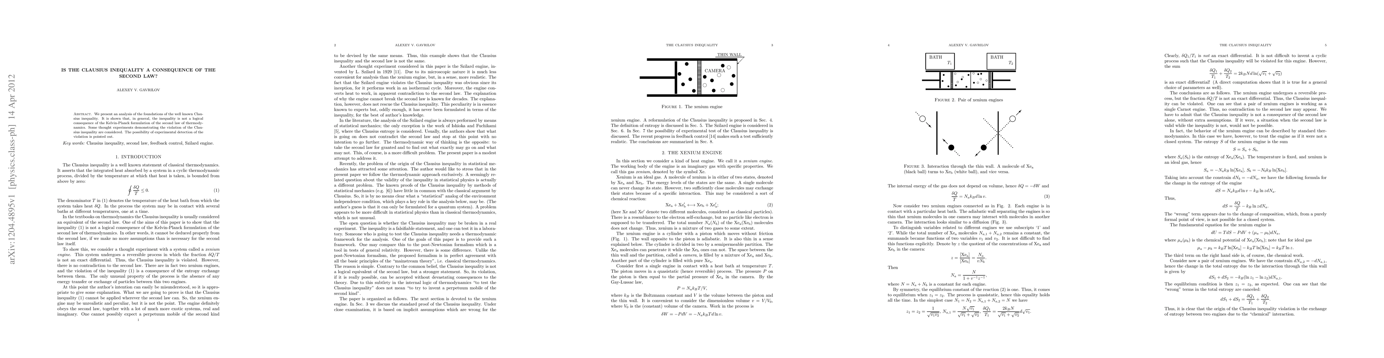 The Clausius inequality is not a direct consequence of the Kelvin-Planck statement of the second law of thermodynamics, as demonstrated by specific thought experiments. The paper also discusses the potential for experimental detection of violations of this inequality.