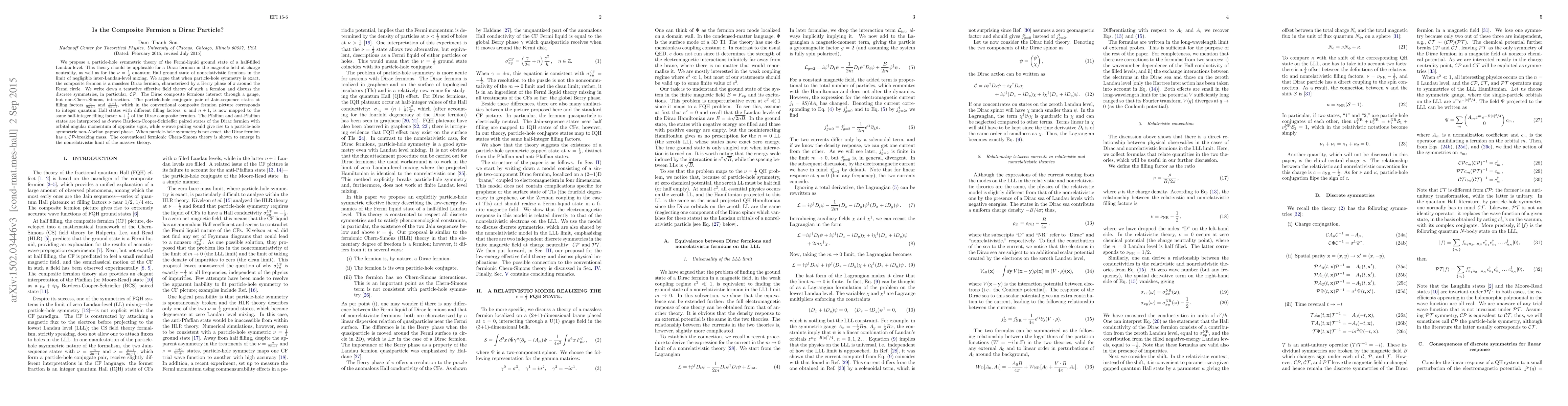 We propose a particle-hole symmetric theory of the Fermi-liquid ground state of a half-filled Landau level. This theory should be applicable for a Dirac fermion in the magnetic field at charge neutrality, as well as for the $\nu=\frac12$ quantum Hall ground state of nonrelativistic fermions in the limit of negligible inter-Landau-level mixing. We argue that when particle-hole symmetry is exact, the composite fermion is a massless Dirac fermion, characterized by a Berry phase of $\pi$ around the Fermi circle. We write down a tentative effective field theory of such a fermion and discuss the discrete symmetries, in particular, $\mathcal C\mathcal P$. The Dirac composite fermions interact through a gauge, but non-Chern-Simons, interaction. The particle-hole conjugate pair of Jain-sequence states at filling factors $\frac n{2n+1}$ and $\frac{n+1}{2n+1}$, which in the conventional composite fermion picture corresponds to integer quantum Hall states with different filling factors, $n$ and $n+1$, is now mapped to the same half-integer filling factor $n+\frac12$ of the Dirac composite fermion. The Pfaffian and anti-Pfaffian states are interpreted as $d$-wave Bardeen-Cooper-Schrieffer paired states of the Dirac fermion with orbital angular momentum of opposite signs, while $s$-wave pairing would give rise to a particle-hole symmetric non-Abelian gapped phase. When particle-hole symmetry is not exact, the Dirac fermion has a $\mathcal C\mathcal P$-breaking mass. The conventional fermionic Chern-Simons theory is shown to emerge in the nonrelativistic limit of the massive theory.