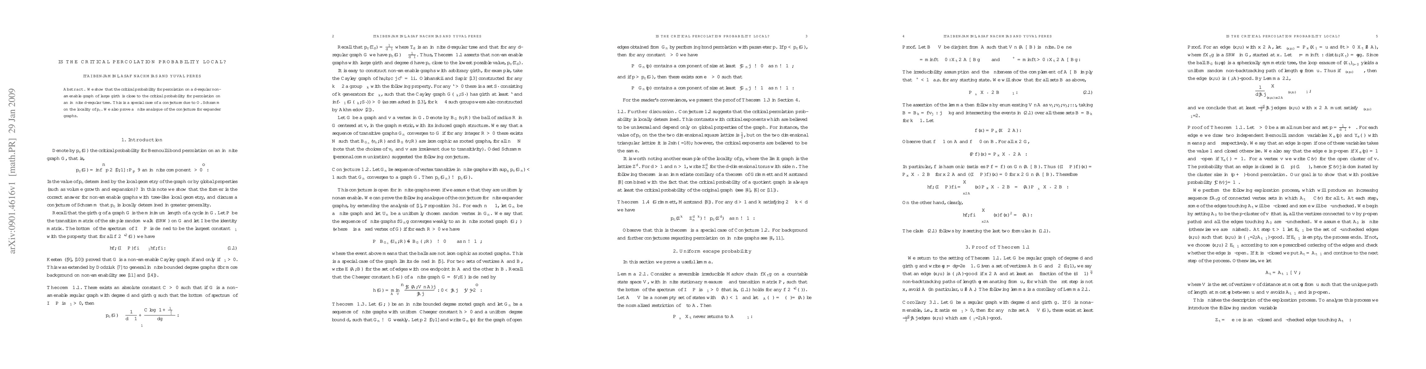 We show that the critical probability for percolation on a d-regular non-amenable graph of large girth is close to the critical probability for percolation on an infinite d-regular tree. This is a special case of a conjecture due to O. Schramm on the locality of p_c. We also prove a finite analogue of the conjecture for expander graphs.