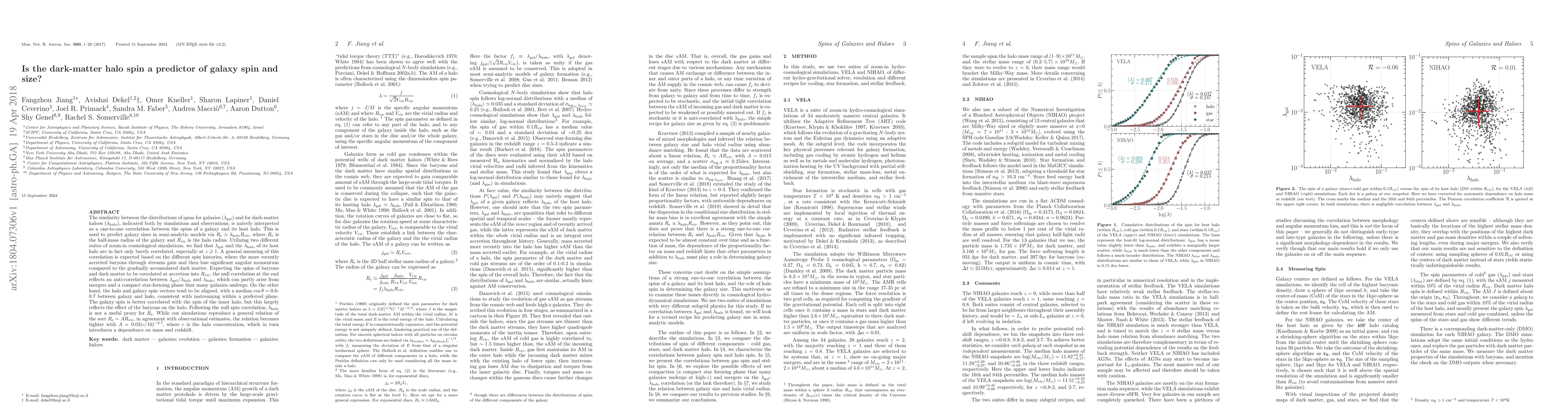 The paper finds that the spin of a dark-matter halo ($\lambda_{\rm h}$) is not a strong predictor of galaxy spin ($\lambda_{\rm g}$) or size, despite their similar distributions. Instead, galaxy spin correlates more closely with the spin of the inner halo, influenced by baryonic processes.