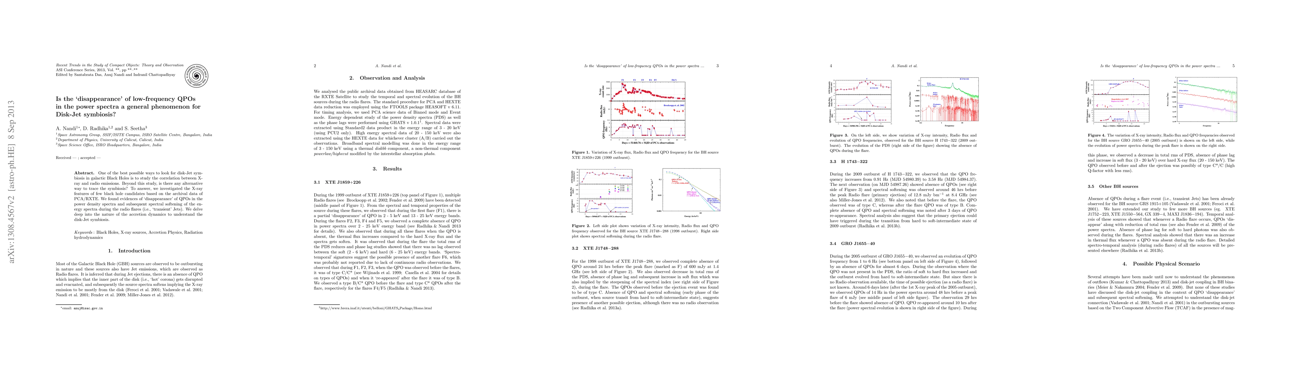 The study examines the correlation between X-ray and radio emissions in galactic Black Holes to trace disk-Jet symbiosis. It found that QPOs in the power density spectra disappear during radio flares, indicating a link between accretion dynamics and jet formation, suggesting a potential alternative method to study disk-Jet interactions.