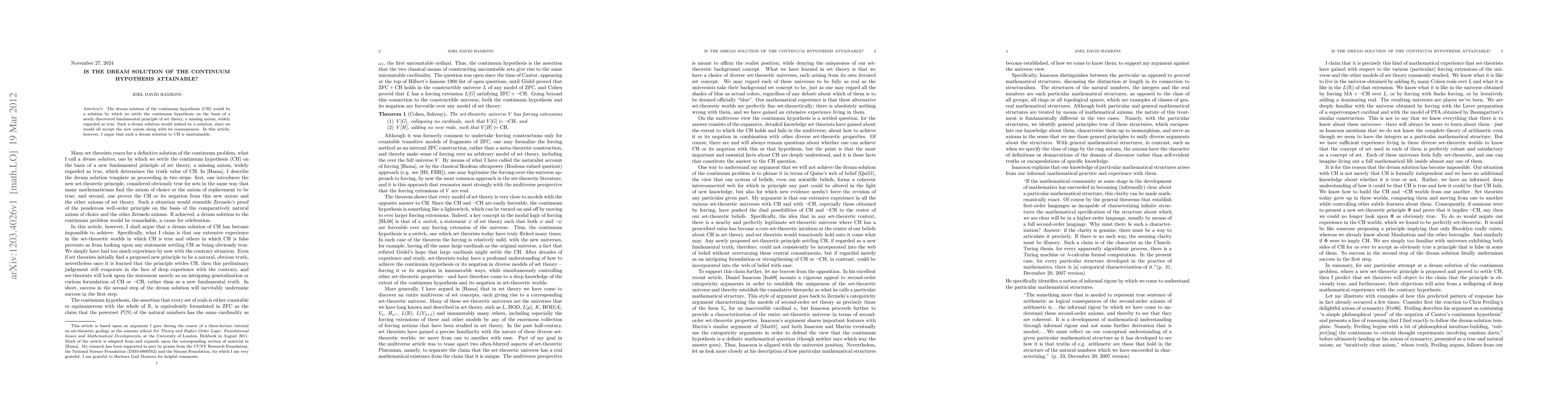 The paper discusses the concept of a 'dream solution' to the continuum hypothesis (CH) through a fundamental set-theoretic principle, drawing from the author's experience with various set-theoretic models and extensions.