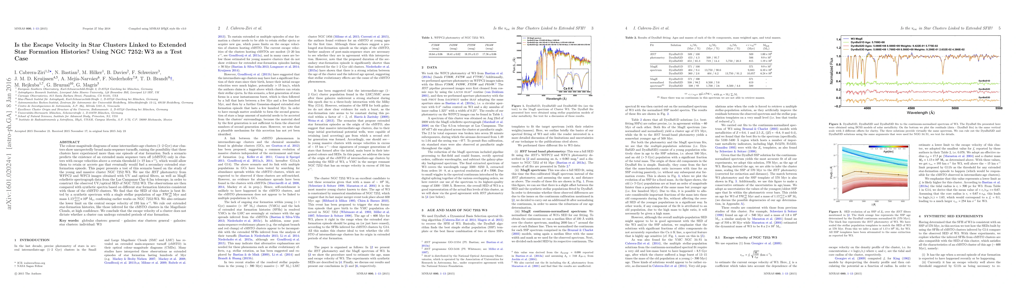 A study of the cluster NGC 7252: W3 found no link between escape velocity and extended star formation histories, contradicting previous predictions, and confirmed a single stellar population age and mass.