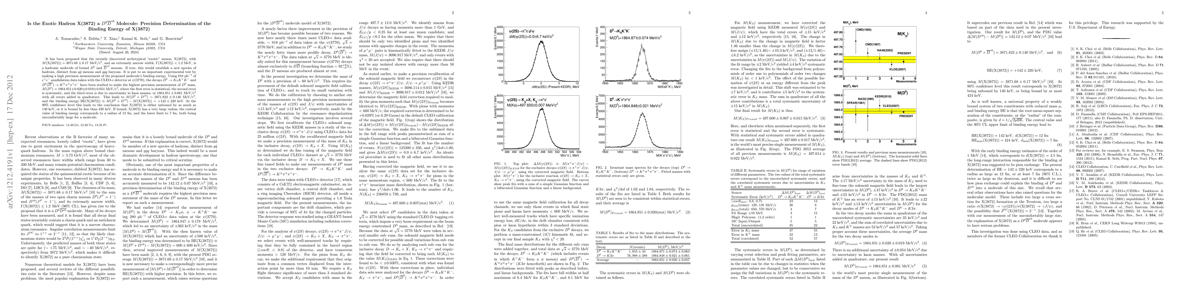 It has been proposed that the recently discovered archetypical "exotic" meson, X(3872), with M(X(3872))=3871.68+-0.17 MeV/c^2, and an extremely narrow width, Gamma(X(3872))<1.2 MeV, is a hadronic molecule of bound D^0 and D^*0 mesons. If true, this would establish a new species of hadrons, distinct from qqbar mesons and qqq baryons. It is put to an important experimental test by making a high precision measurement of the proposed molecule's binding energy. Using 818 pb-1 of e+e- annihilation data taken with the CLEO-c detector at psi(3770), the decays D0 -> KS K+ K- and D^0(Dbar0) -> K+- pi-+ pi+ pi- have been studied to make the highest precision measurement of D0 mass, M(D0)=1864.851+-0.020+-0.019+-0.054 MeV/c^2, where the first error is statistical, the second error is systematic, and the third error is due to uncertainty in kaon masses, or 1864.851+-0.061 MeV/c^2 with all errors added in quadrature. This leads to M(D0 + D*0)=3871.822+-0.140 MeV/c^2, and the binding energy BE(X(3872)) = M(D0+D*0)-M(X(3872)) = +142+-220 keV. At the 90% confidence level this leads to the conclusion that X(3872) is either unbound by as much as 140 keV, or it is bound by less than 420 keV. If bound, X(3872) has a very large radius; the central value of binding energy corresponds to a radius of 12 fm, and the lower limit to 7 fm, both being uncomfortably large for a molecule.
