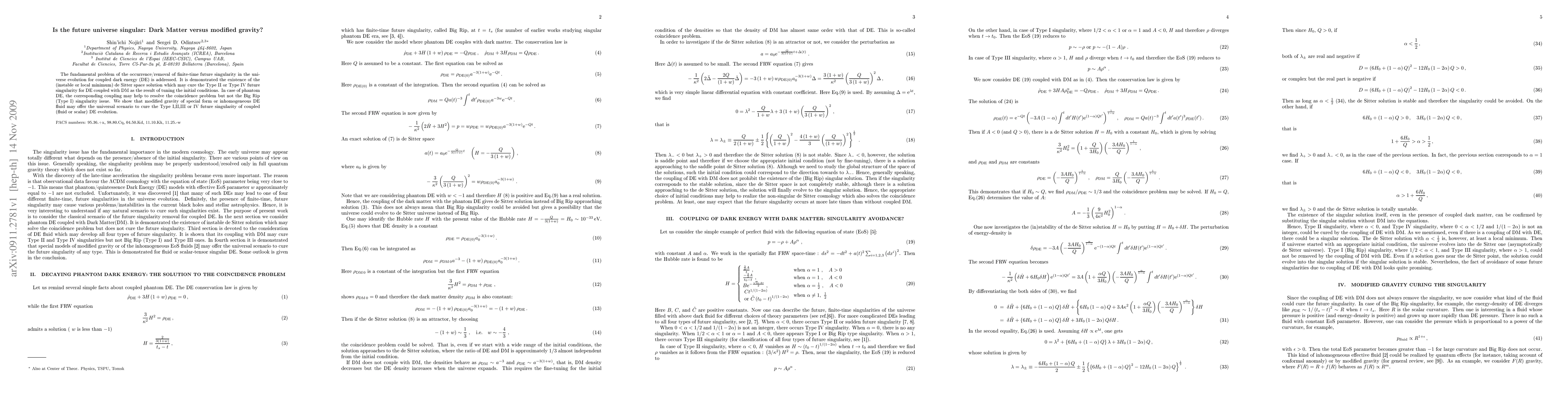This paper explores the potential for resolving future universe singularities through the interplay of dark matter and dark energy, demonstrating that certain configurations can avert Type II and IV singularities. However, modified gravity or inhomogeneous dark energy may provide a universal solution to a broader range of singularities, including Type I and III.