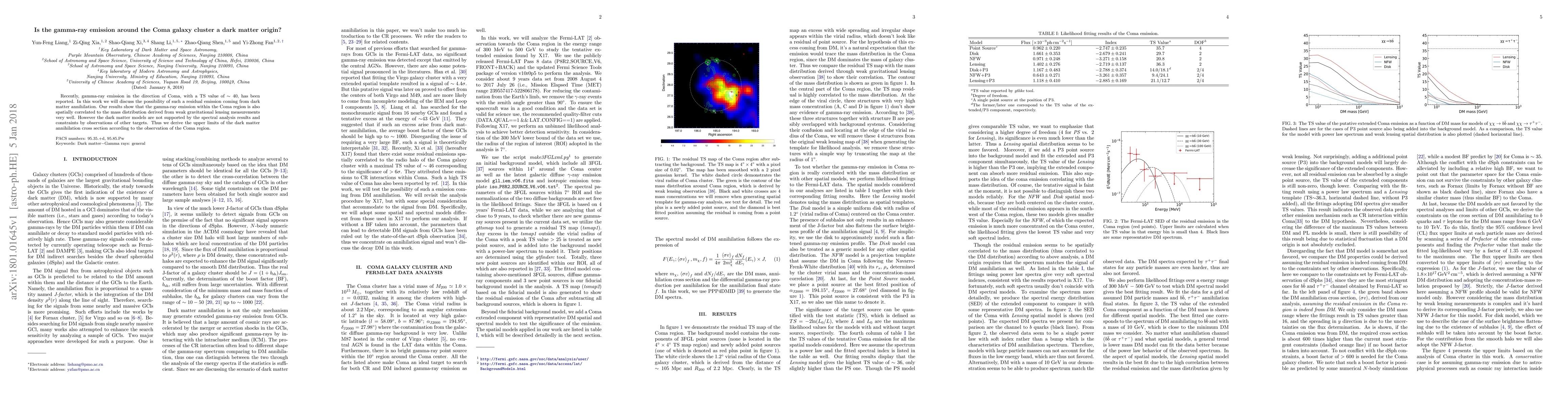Recently, gamma-ray emission in the direction of Coma, with a TS value of $\sim 40$, has been reported. In this work we will discuss the possibility of such a residual emission coming from dark matter annihilation. Our results show that the gamma-ray emission within the Coma region is also spatially correlated to the mass distribution derived from weak gravitational lensing measurements very well. However the dark matter models are not supported by the spectral analysis results and constraints by observations of other targets. Thus we derive the upper limits of the dark matter annihilation cross section according to the observation of the Coma region.