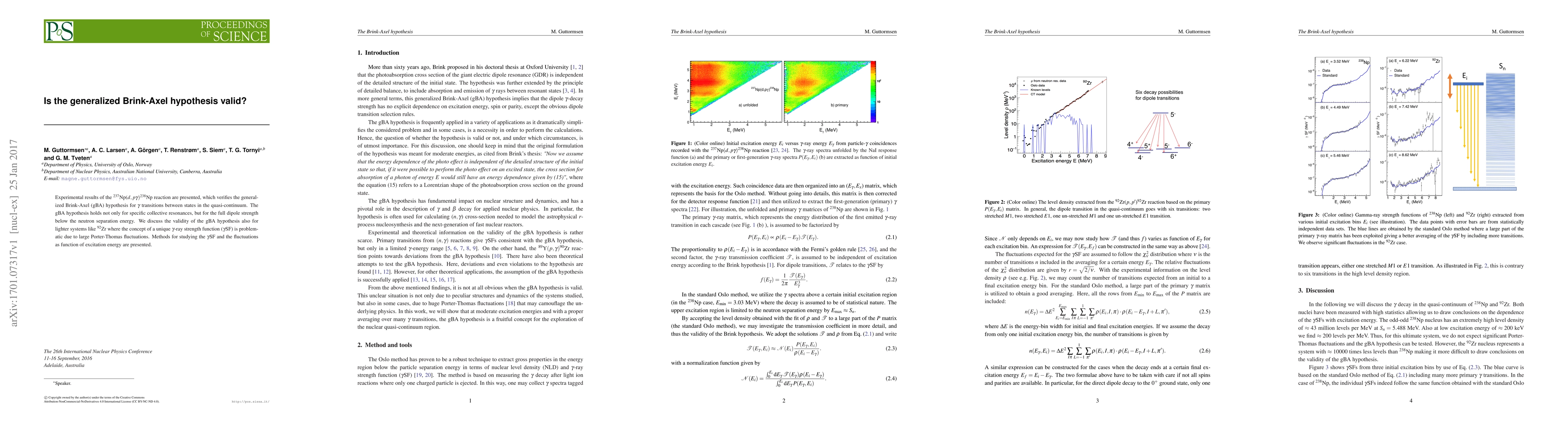 Experimental results of the $^{237}$Np($d, p \gamma)^{238}$Np reaction are presented, which verifies the generalized Brink-Axel (gBA) hypothesis for $\gamma$ transitions between states in the quasi-continuum. The gBA hypothesis holds not only for specific collective resonances, but for the full dipole strength below the neutron separation energy. We discuss the validity of the gBA hypothesis also for lighter systems like $^{92}$Zr where the concept of a unique $\gamma$-ray strength function ($\gamma$SF) is problematic due to large Porter-Thomas fluctuations. Methods for studying the $\gamma$SF and the fluctuations as function of excitation energy are presented.